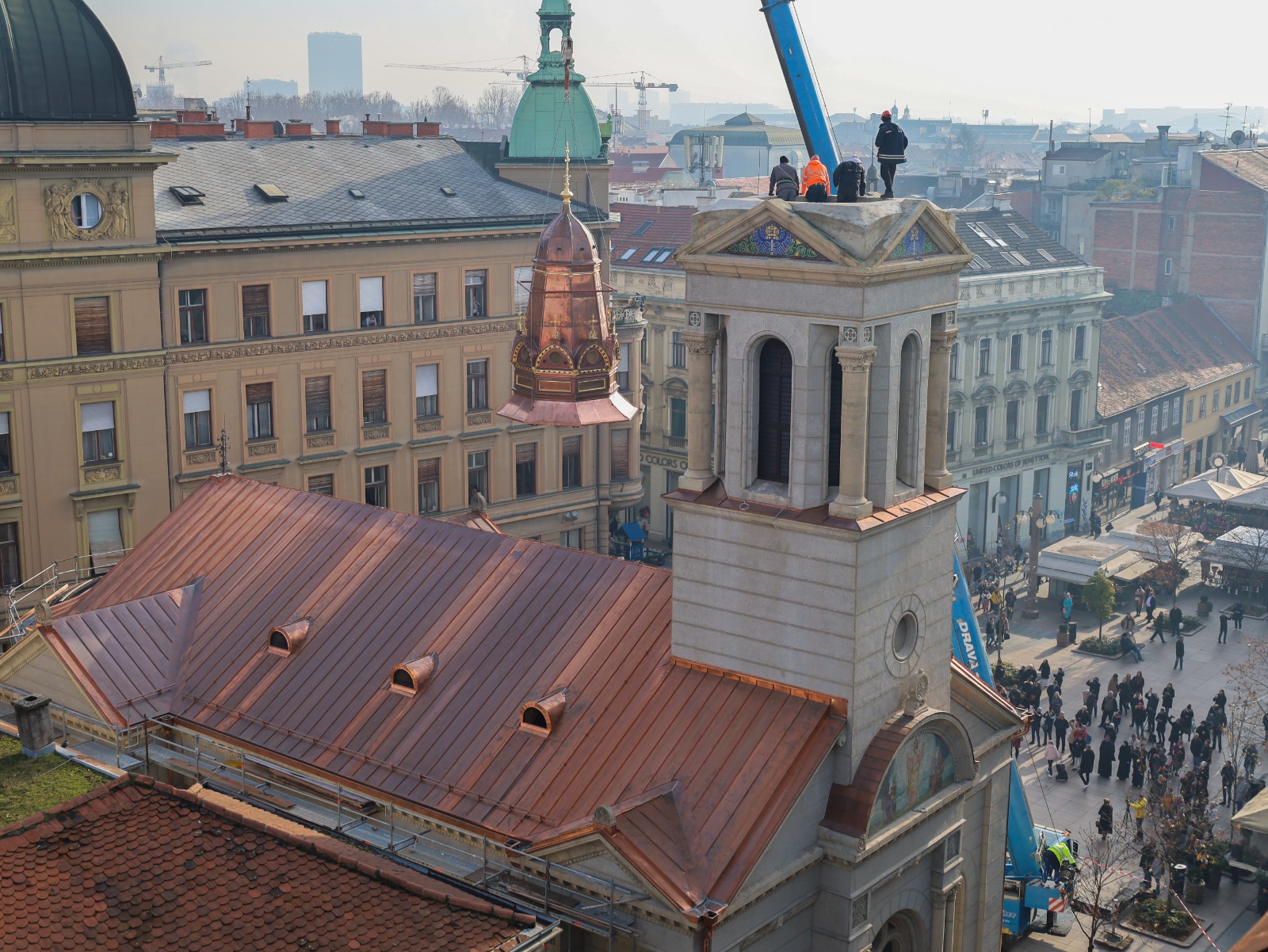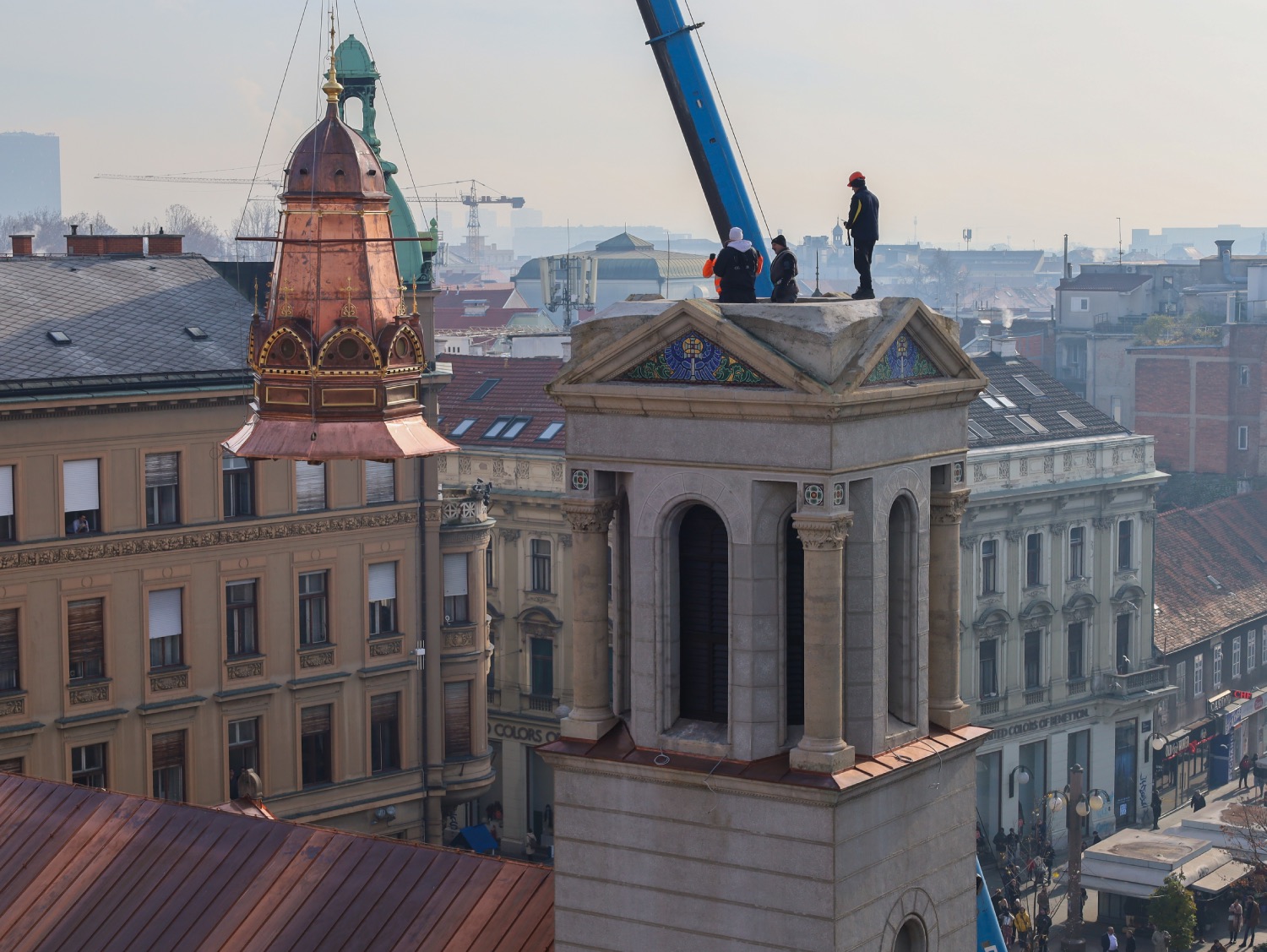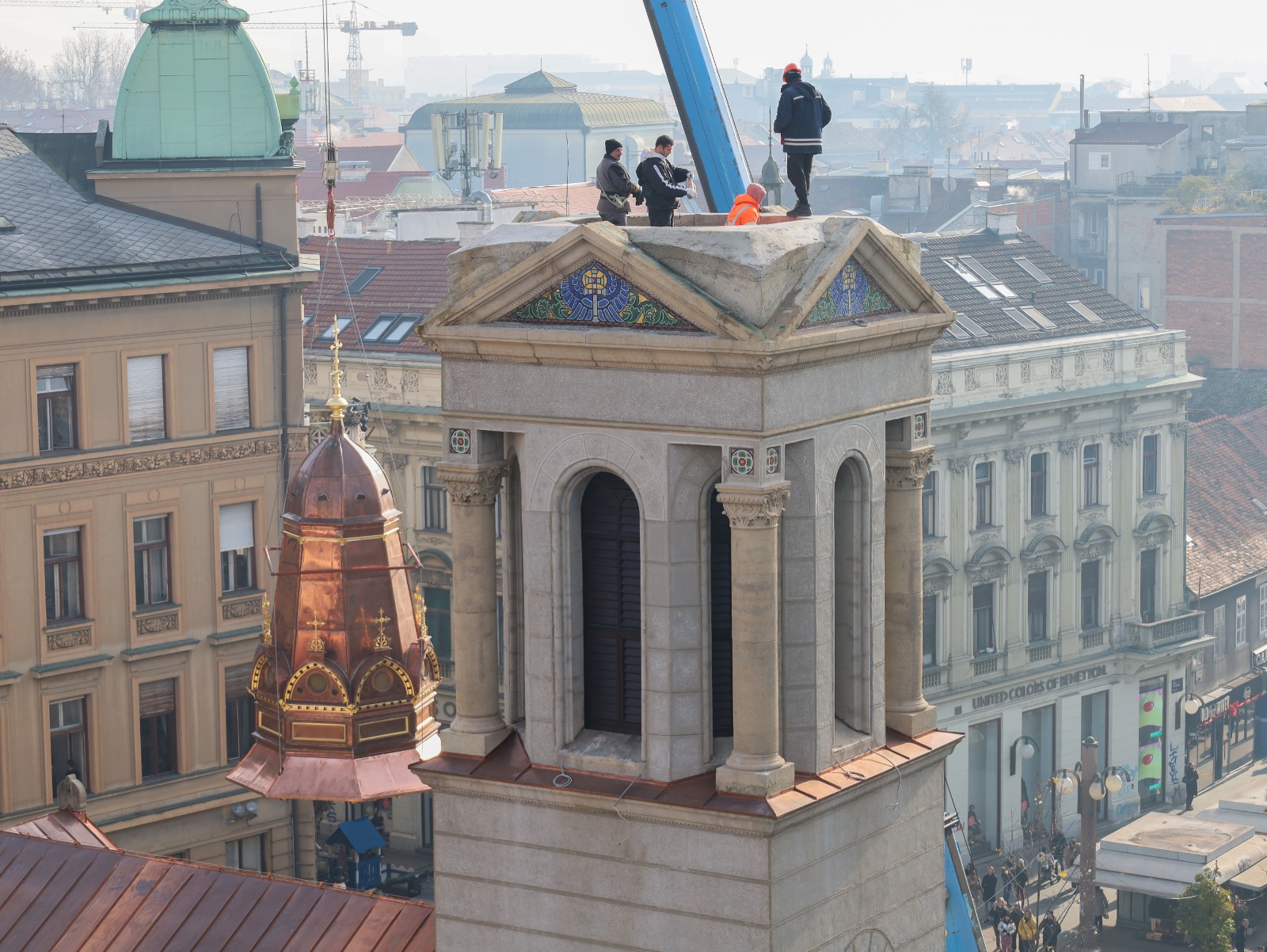 - Враћањем реконструисане капе звоника завршавамо важну целину обнове храма, рекао је свештеник Душко Спасојевић, старешина храма Преображења Господњег у Загребу