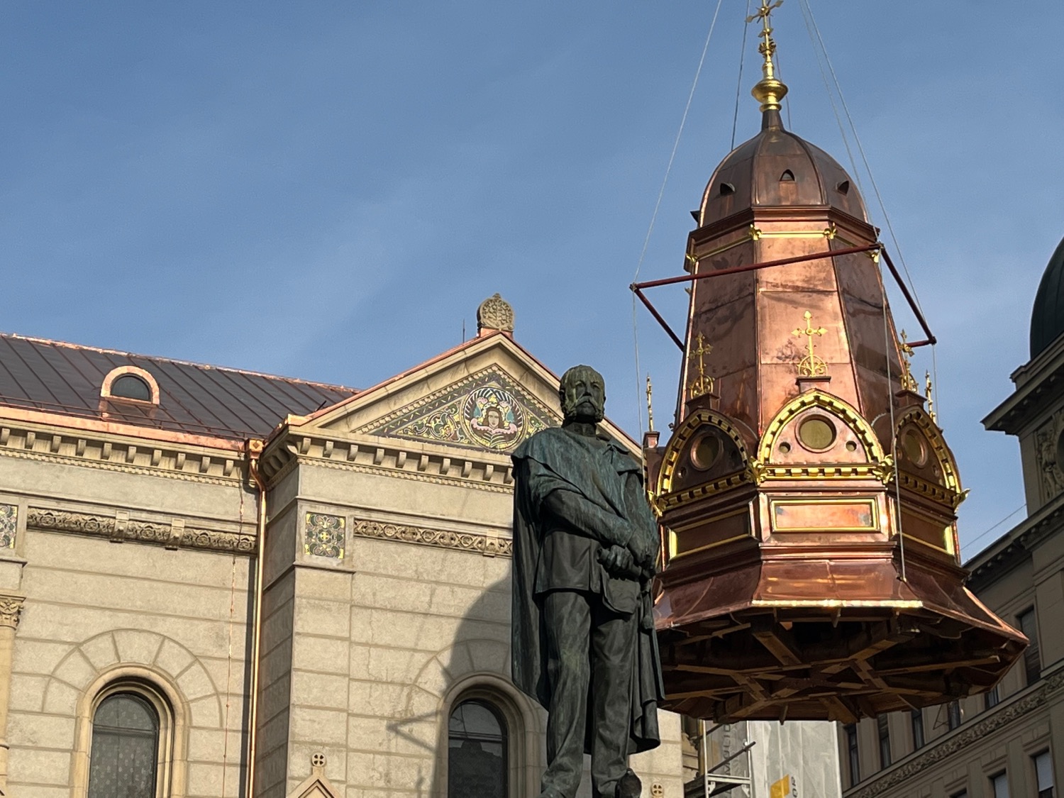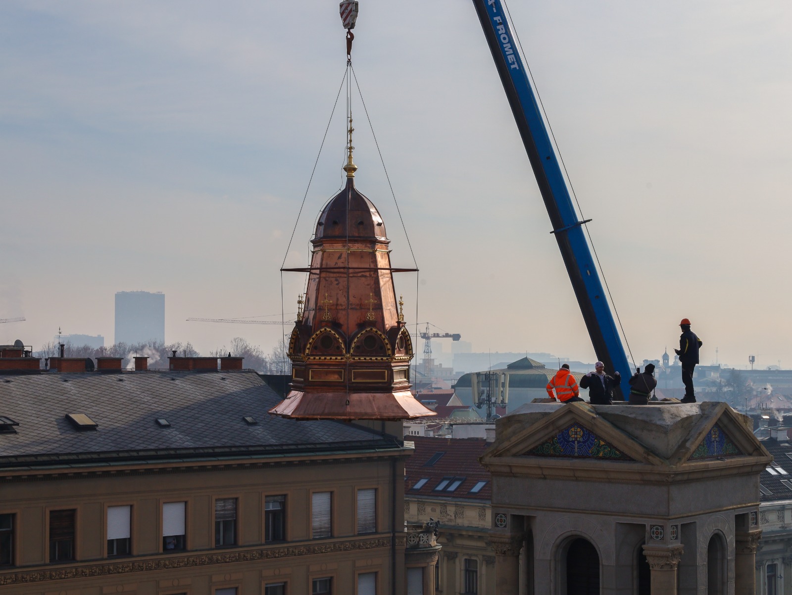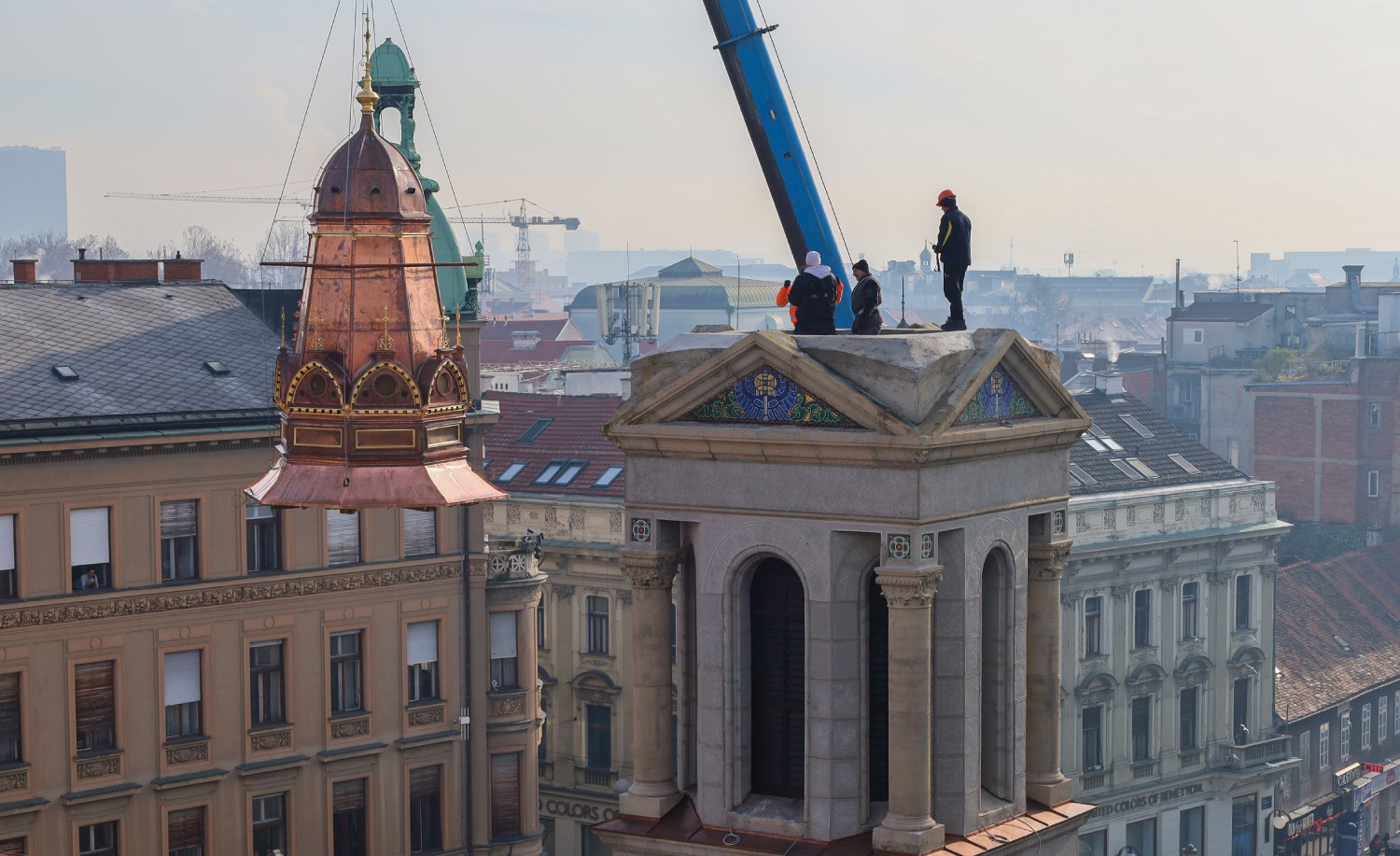- Враћањем реконструисане капе звоника завршавамо важну целину обнове храма, рекао је свештеник Душко Спасојевић, старешина храма Преображења Господњег у Загребу