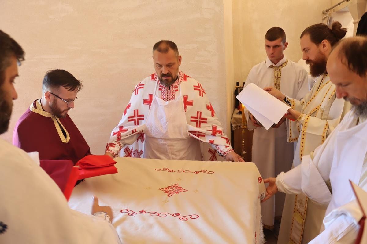 Саслуживали су: протојереј-ставрофор Небојша Коловић, јереји Александар Грчић и Бранко Калаба и ђакон Душко Орашанин. Беседећи по читању светог Јеванђеља, владика Димитрије је подсетио на речи апостола Павла: Будите духом ватрени, Господу служите: