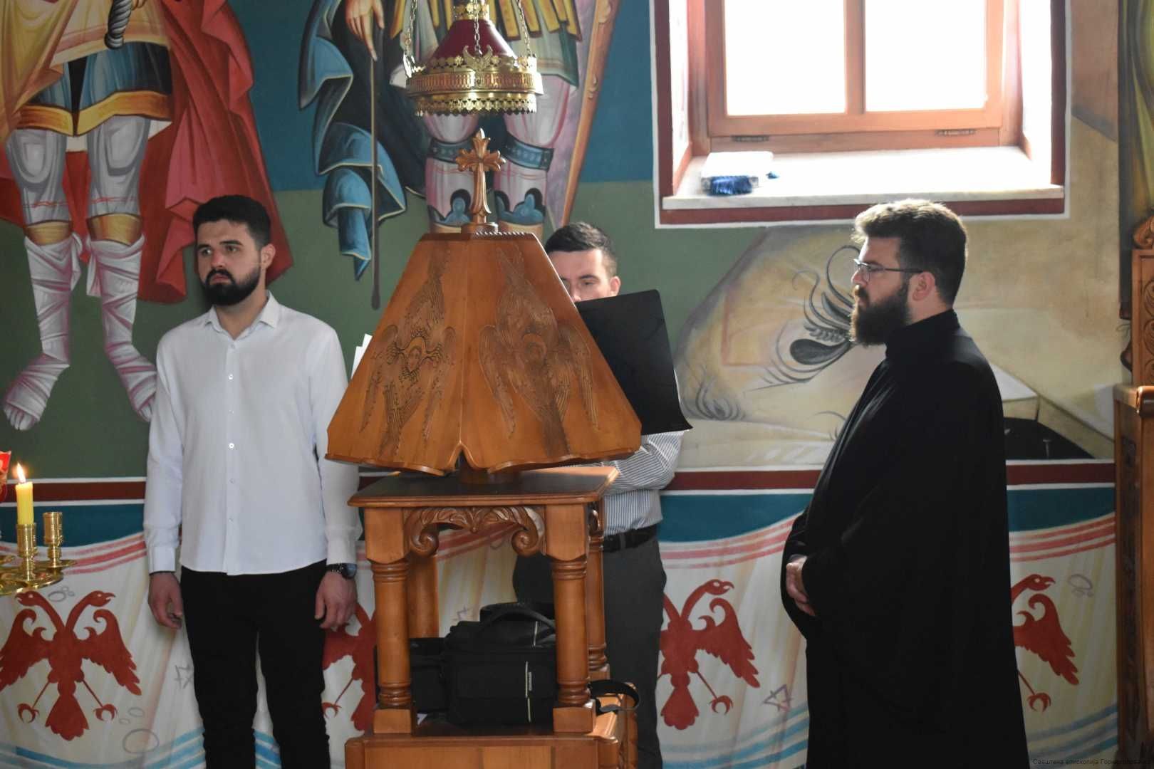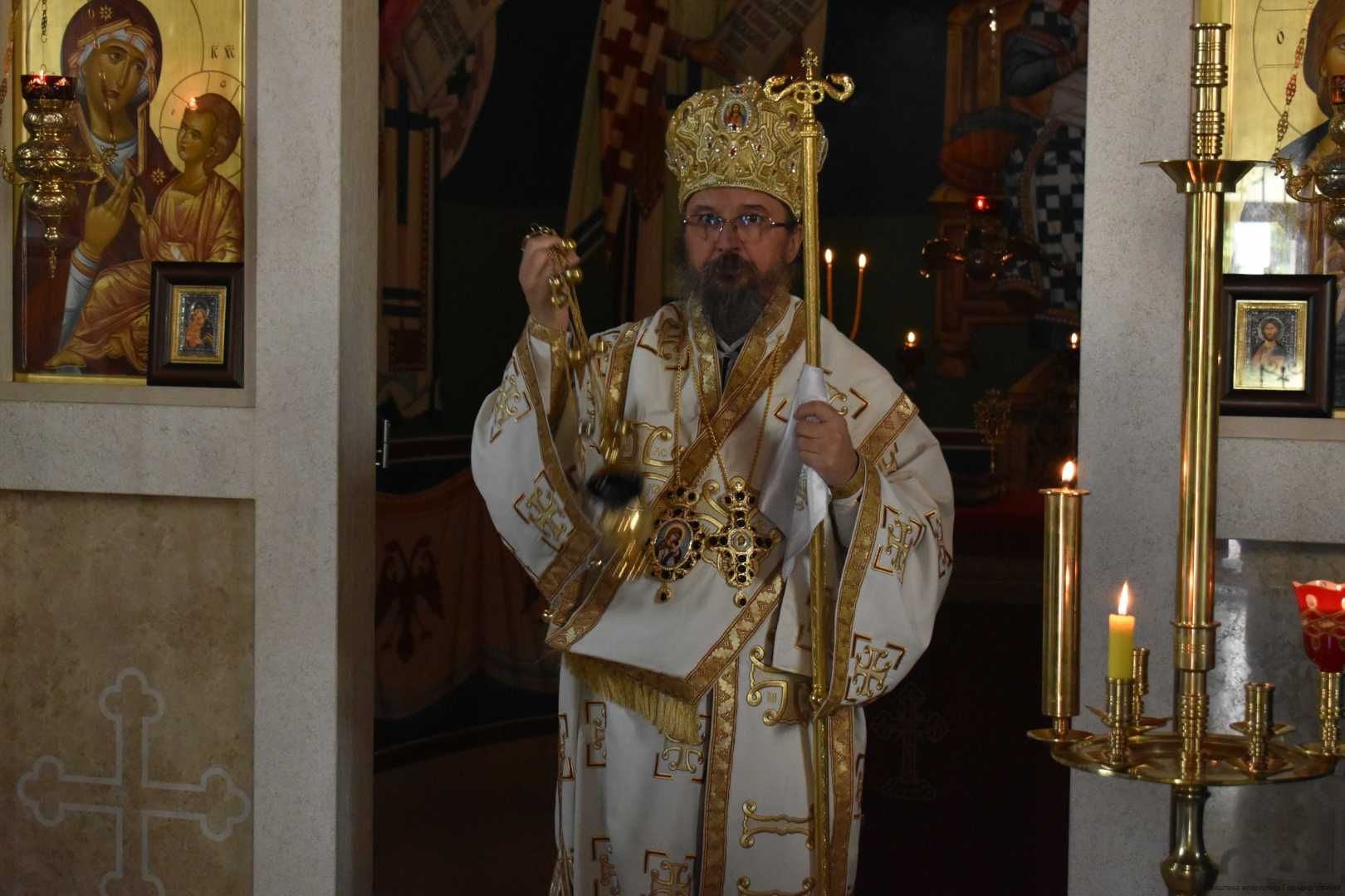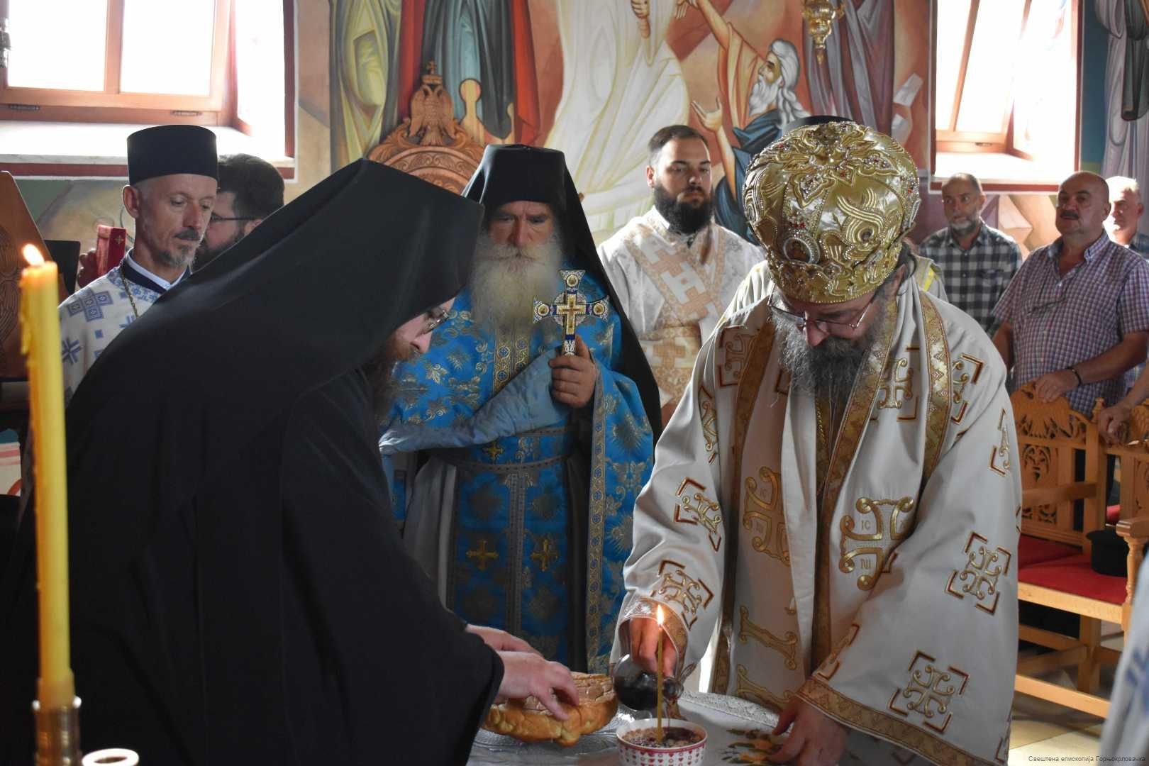 Саслуживали су: јеромонах Саво (Јаковљевић), протопрезвитер-ставрофор Јеленко Стојановић, протопрезвитер-ставрофор Радослав Анђелић, протопрезвитер Саша Лончина, презвитер Горан Каламанда и протођакон Небојша Анђић. После заамвоне молитве владика Герасим је осветио славске дарове у славу Божју и у част Пресвете Богородице.