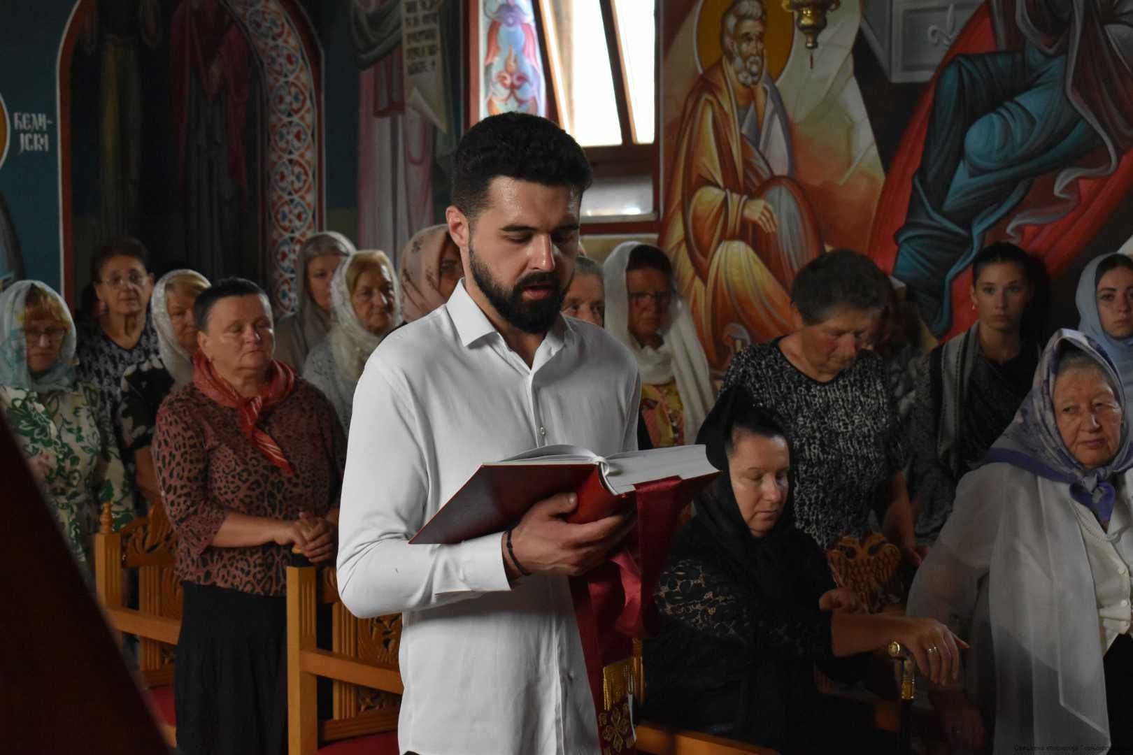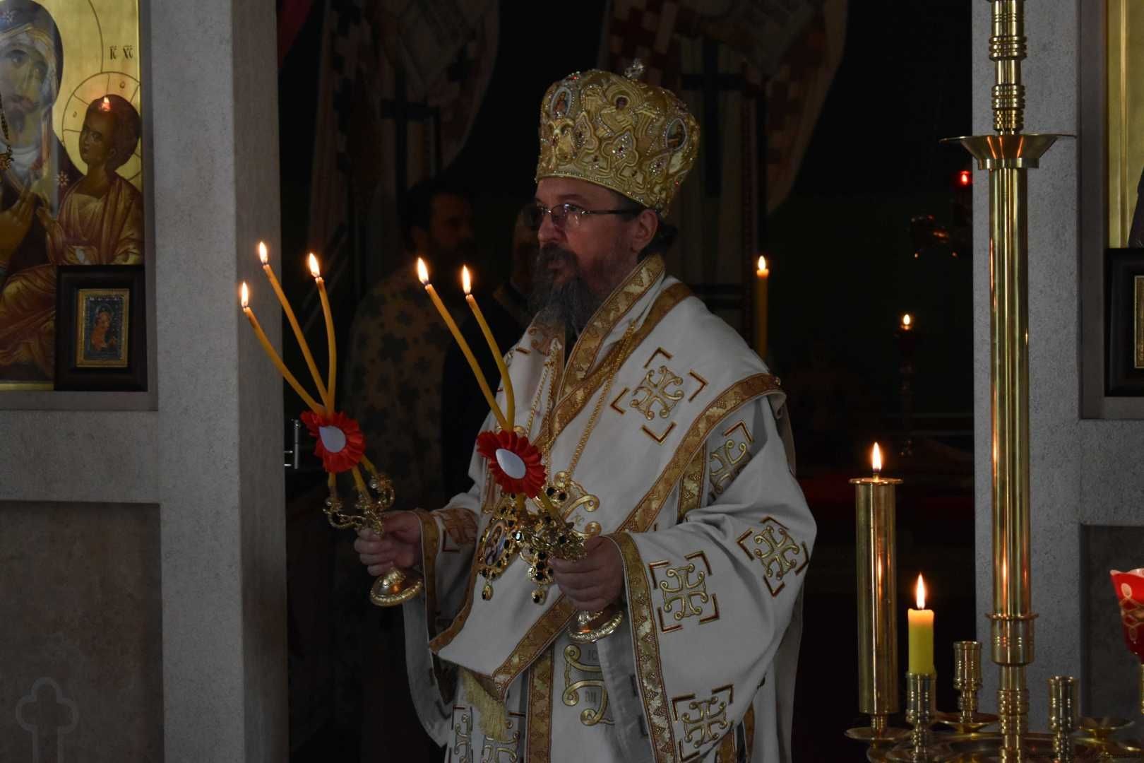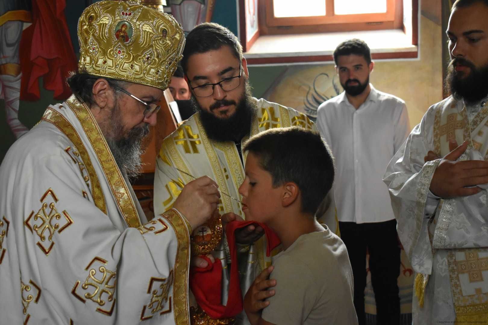 Саслуживали су: јеромонах Саво (Јаковљевић), протопрезвитер-ставрофор Јеленко Стојановић, протопрезвитер-ставрофор Радослав Анђелић, протопрезвитер Саша Лончина, презвитер Горан Каламанда и протођакон Небојша Анђић. После заамвоне молитве владика Герасим је осветио славске дарове у славу Божју и у част Пресвете Богородице.