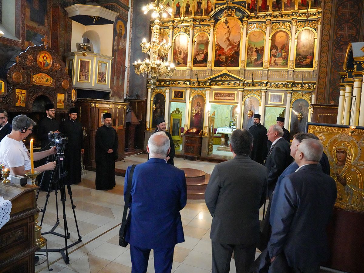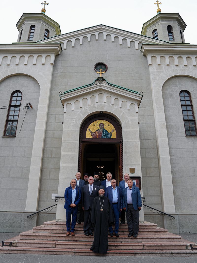 После обиласка храма Вазнесења Господњег, у Парохијском дому је уприличен пријем у част уваженог госта. Сусрету су присуствовали: протојереј Ђорђе Стојисављевић, шеф Кабинета Патријарха српског; братство Вазнесењског храма; пуковници Владимир Ковтун, Димитриј Измајлов и Игор Емељанов; као и генерали Јован Милановић, Радослав Шкорић и Драган Радулац. Присутан је био и пуковник Миодраг Капор, заменик председника удружења Ветерани војнообавештајне службе Србије.