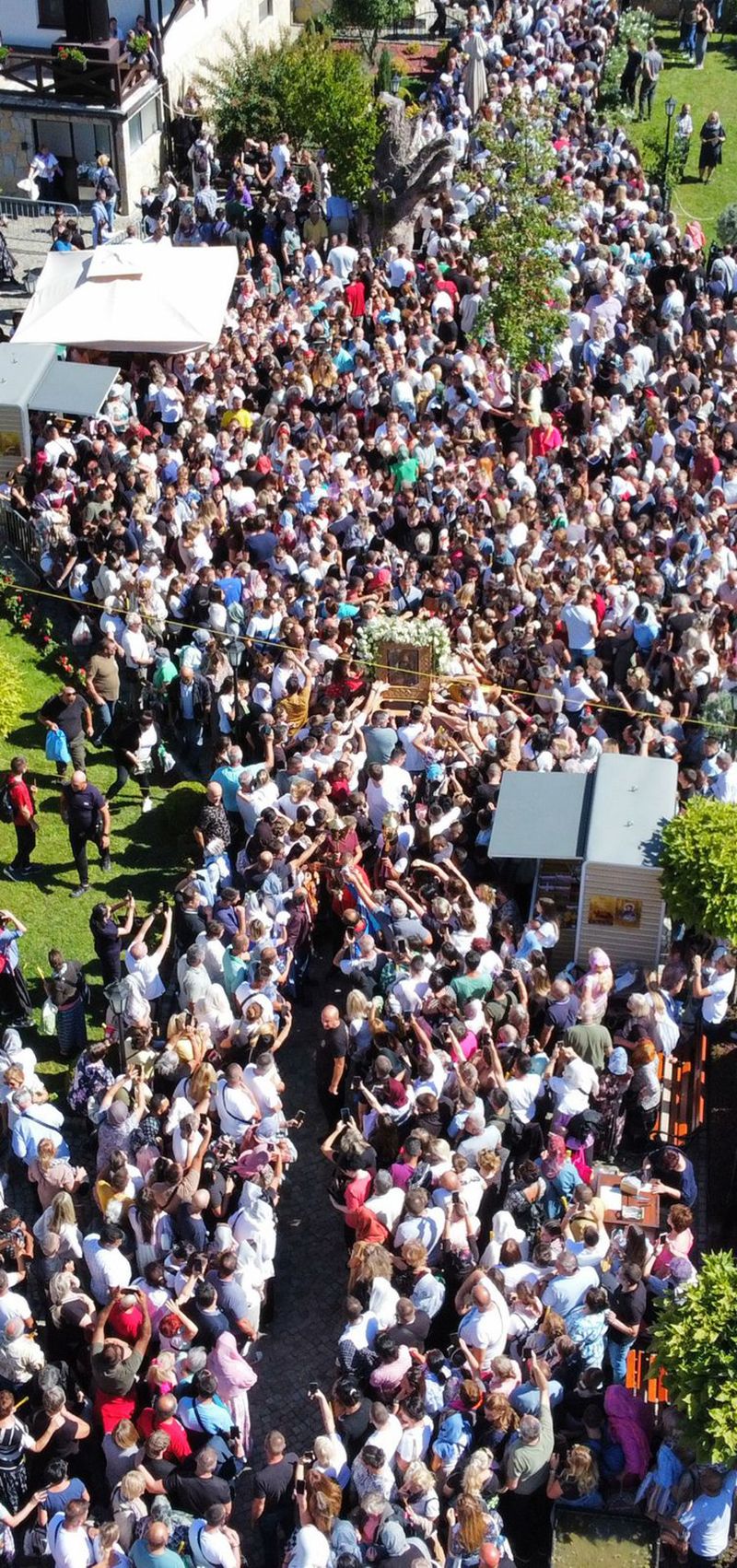 У светињи која чува мошти светих Зосима и Јакова сабрало се преко петнаест хиљада верних да заједно прославе велики јубилеј. У молитвеном јединству осећала се посебна благодат и небеска заштита Мајке Божје, чија се чудотворна икона већ девет деценија чува у Туману. После свете Литургије обављен је молебан са освећењем воде, свечана литија и кропљење народа. Верницима су на благослов подељени освећени листићи ловора и маслине, као и латице белих и црвених ружа.