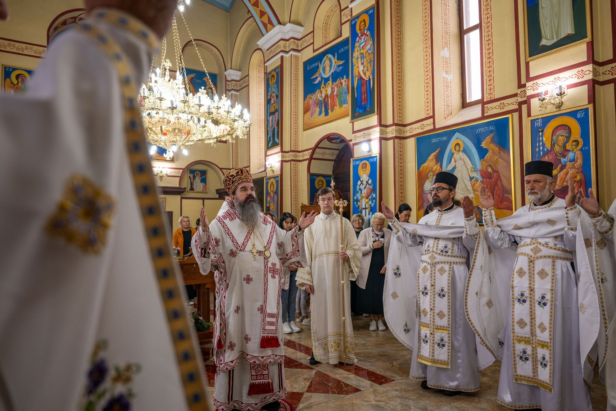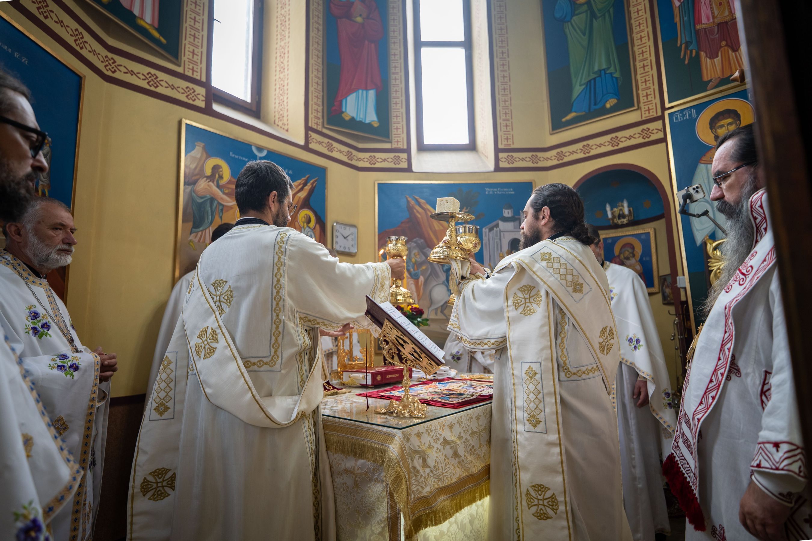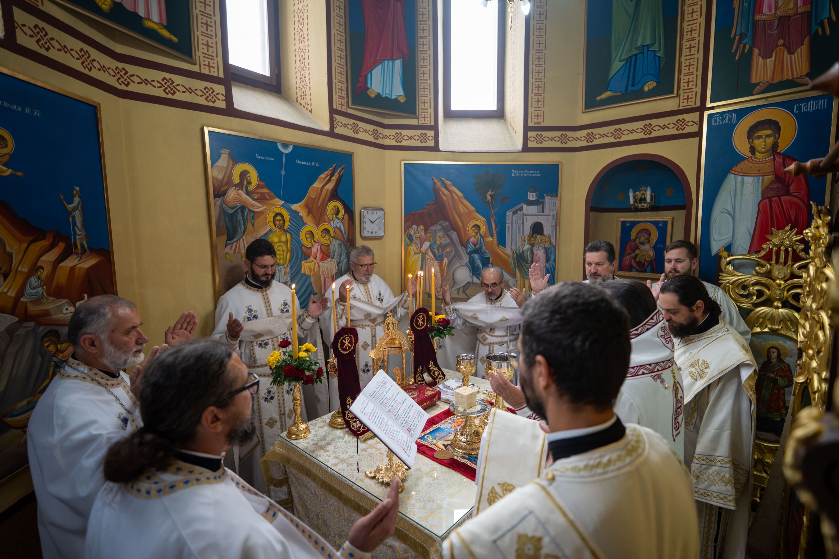 Преосвећеном епископу саслуживали су свештеници храма Светих цара Константина и царице Јелене, а у молитвеном присуству многобројних верника посавотамнавског краја.