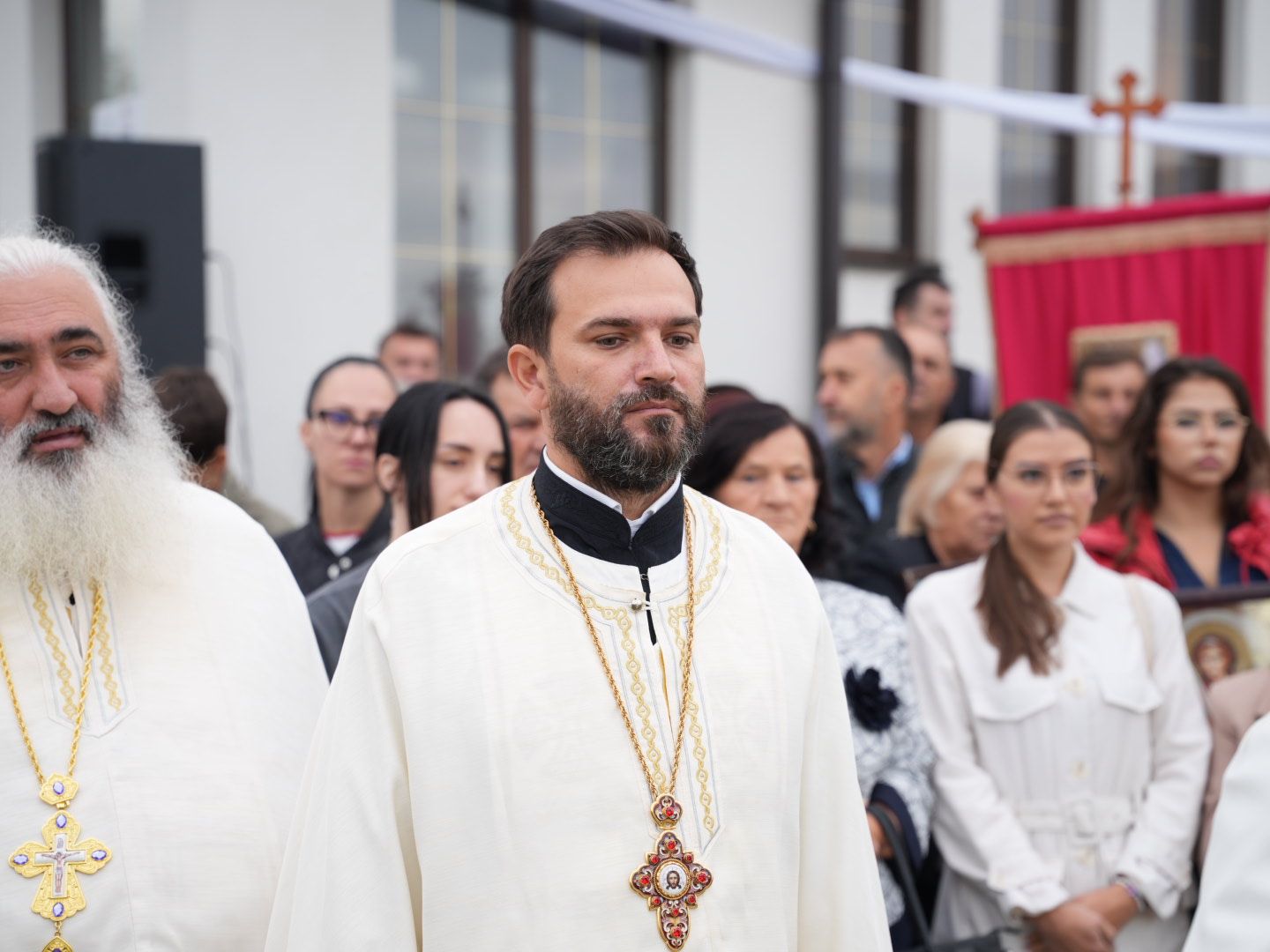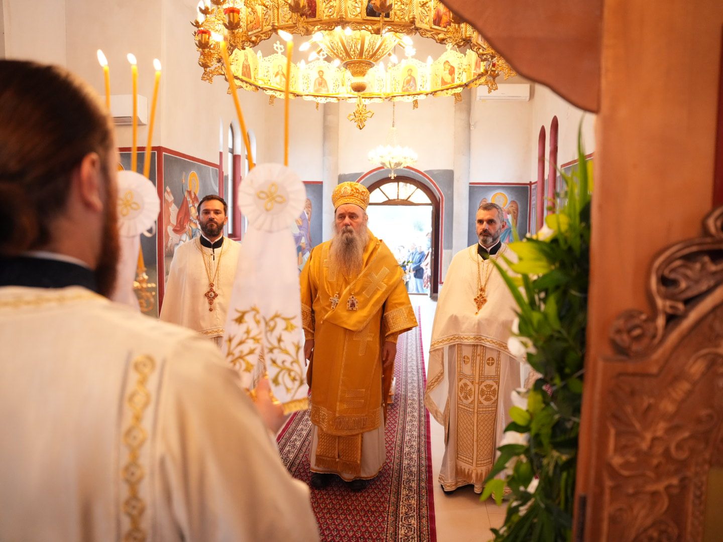 Митрополиту Фотију су суслуживали: протојереј Александар Тешић, архијерејски намесник угљевичко-јањски и старешина храма Свете Петке у Угљевику; протојереј-ставрофор Љубо Богдановић, архијерејски намесник бијељински и старешина храма Светог Георгија у Бијељини; архимандрит Николај, игуман манастира Часног Крста у Равном Пољу; протојереј Александар Мирковић, сабрат Петропавловског храма у Бијељини; као и протођакон Лазар Илић. За певницом су појали браћа Никола и Ђорђе Томић, синови свештеника Драгана.