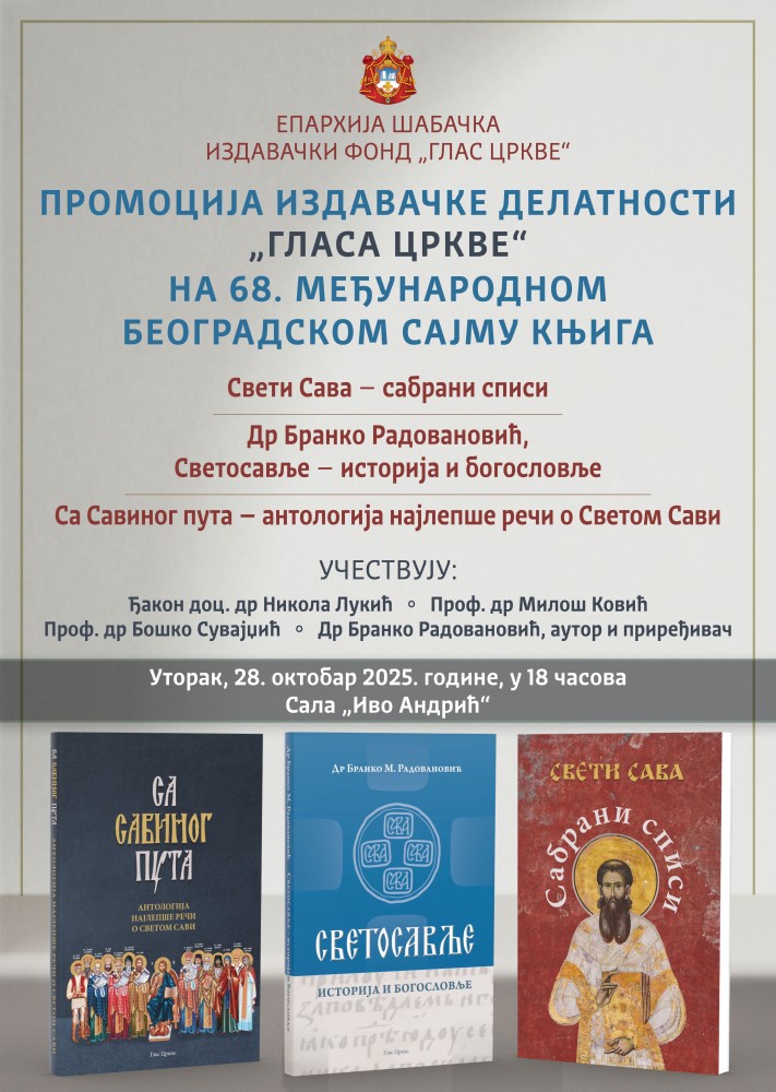 На 68. међународном београдском сајму књига, Издавачки фонд „Глас Цркве“ Епархије шабачке одржаће промоцију своје издавачке делатности.