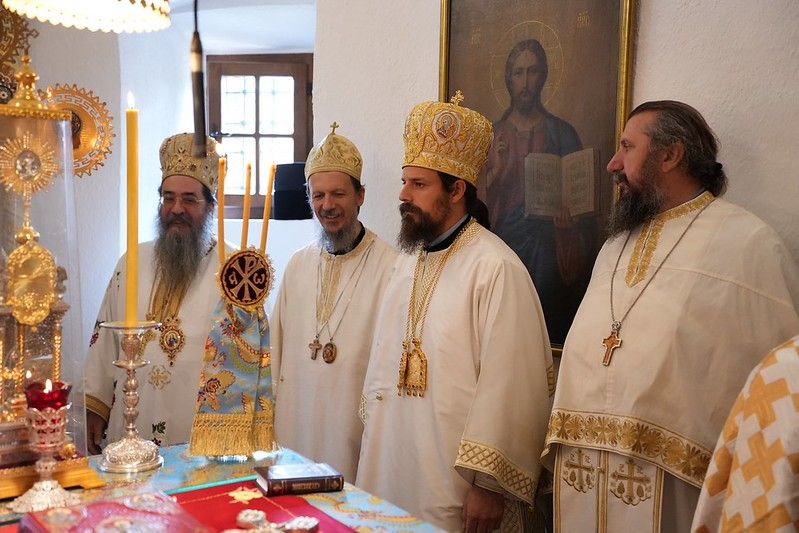Светом Литургијом је началствовао Високопреосвећени Митрополит г. Игњатије из Атинске Архиепископије уз саслужење високопреосвећене и преосвећене господе архијереја Макарија из Јерусалимске Патријаршије, дабробосанског Хризостома, црногорско-приморског Јоаникија, рашко-призренског Теодосија, захумско-херцеговачког Димитрија, пакрачког и славонског Јована и диоклијског Пајсија.