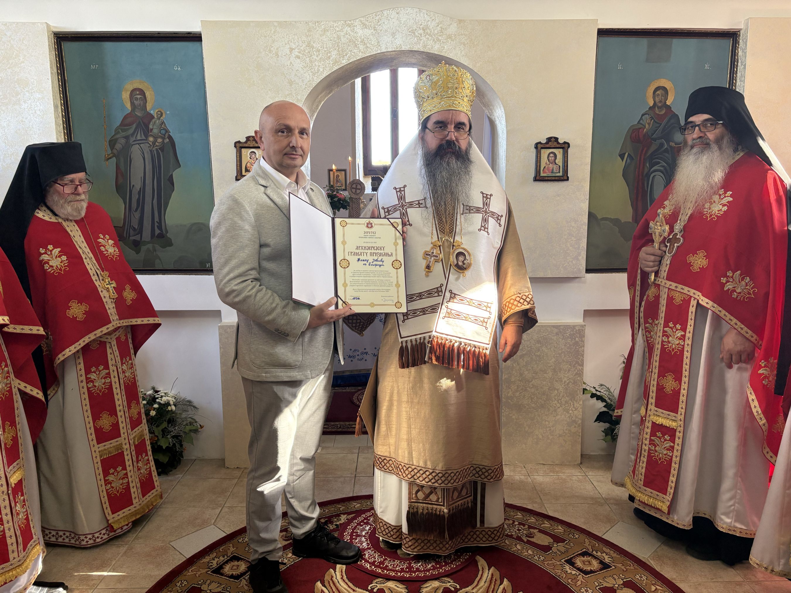 На крају свете Литургије, епископ Јеротеј је доделио Архијерејску грамату признања г. Жељку Јовићу из Београда, родом из Милошевца, а Архијерејску захвалницу г. Владимиру и Мирку Бабићу из Чачка.
