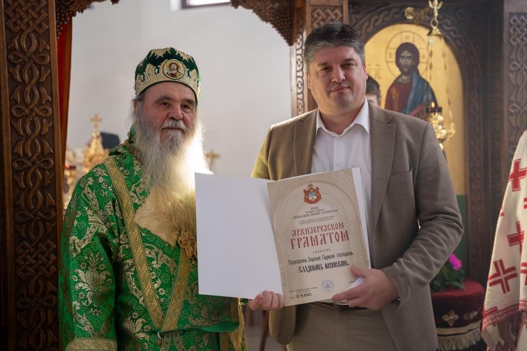 После заамвоне молитве Његово Високопреосвештенство је одликовао јереја Милана Бањца чином протојереја.