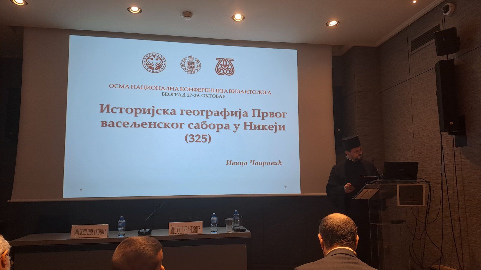Учешће у раду конференције узели су и проф. др Србољуб Убипариповић, декан Православног богословског факултета у Београду, и др Зоран Ранковић, професор на истом Факултету, који су представили саопштење у тематској секцији са насловом Молитва новопостављеног митрополита пред градом у који улази по први пут из Требника са Правилима светих и преславних апостола и другим делима Син. 307 (ГИМ 80370/925) из 1423. године. У општој секцији са византолошким темама излагали су и: проф. др Радомир В. Поповић на тему Први Васељенски Сабор у очима раних црквених историчара, проф. др Ивица Чаировић на тему Историјска географија Првог Васељенског Сабора у Никеји (325), као и докторанд Михаило Миленковић на тему Слика патријарха Фотија у делу О миру Цркава патријарха Јована XI Века (1275–1282): историјски аргументи против Фотија.