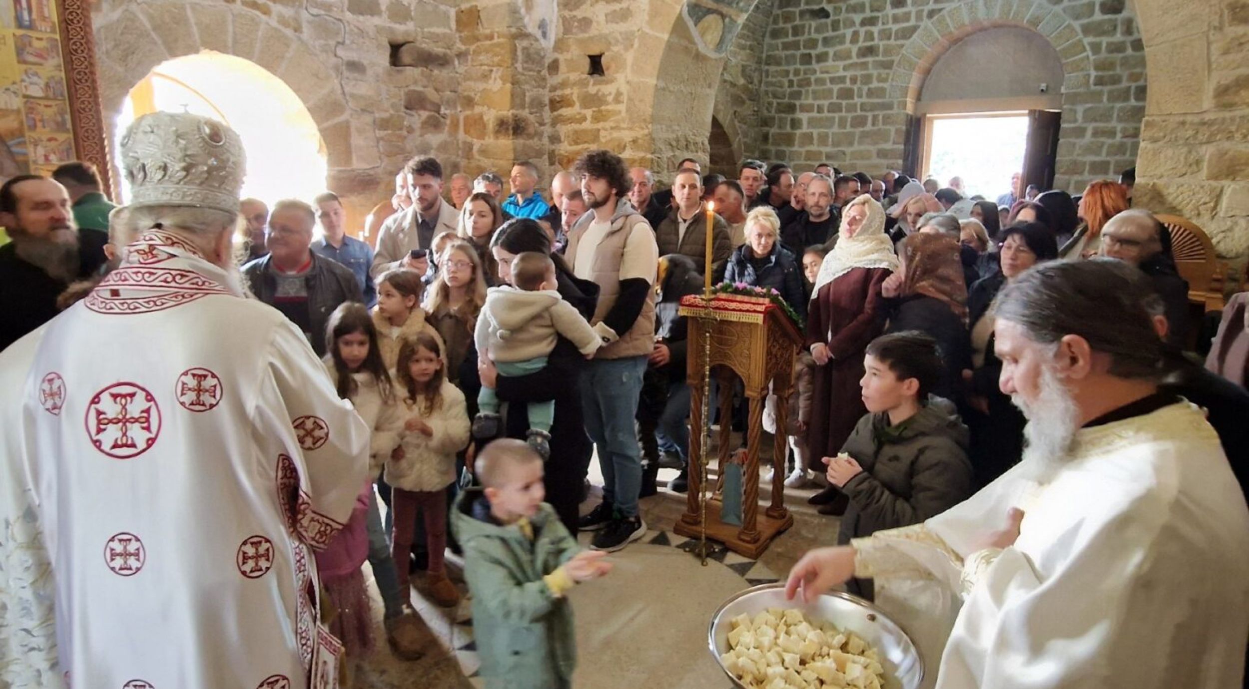 У радости празника, у древном храму сабрао се велики број верника из Новог Пазара, Раса и околних места, испуњавајући светињу као живу литургијску заједницу.