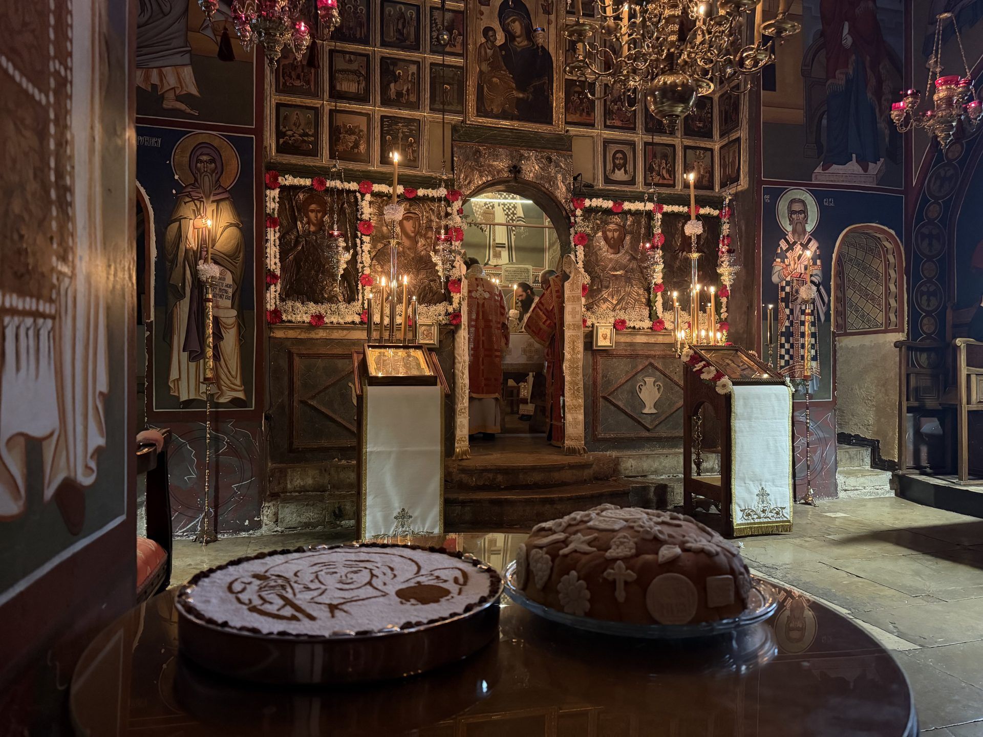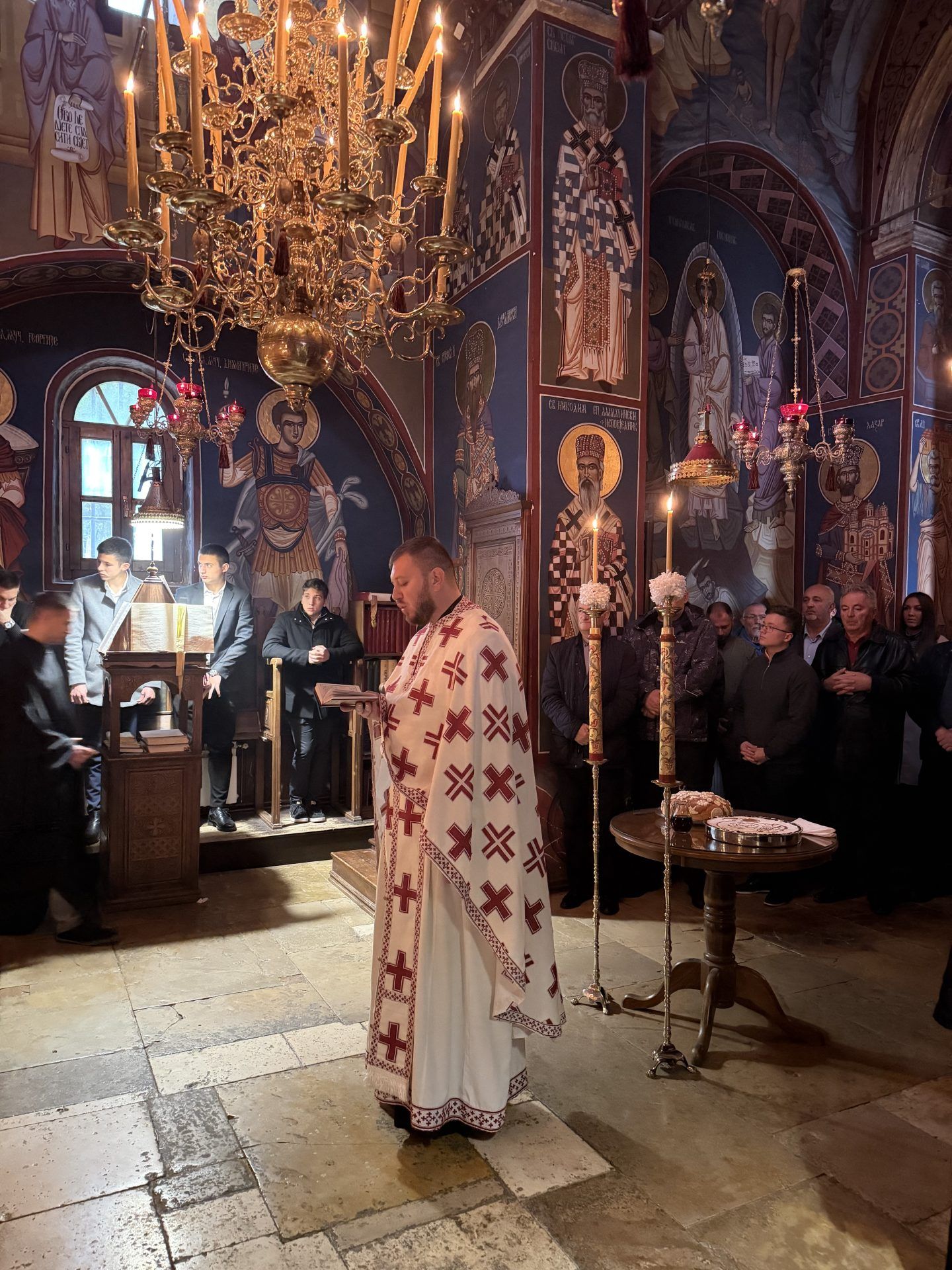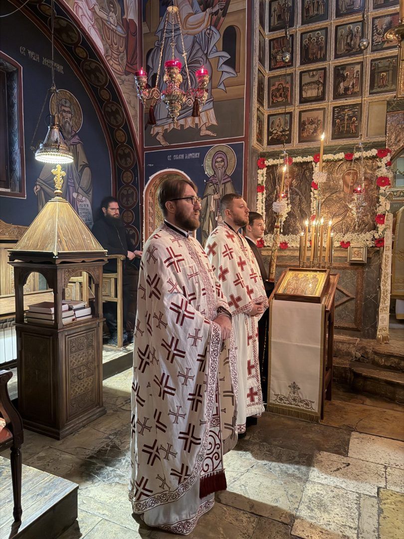 Саслуживали су: митрополит Никодим, игуман Свастијан, јеромонаси Макарије и Киријак, презвитер Здравко Цвијић, протођакон Немања Рељић и ђакони Момир Ђукић и Горан Лукић. После читања јеванђељског зачала присутнима се обратио епископ Сергије. После заамвоне молитве извршено је благосиљање славских приноса. Свечана славска трпеза љубави припремљена је у манастирској трпезарији.