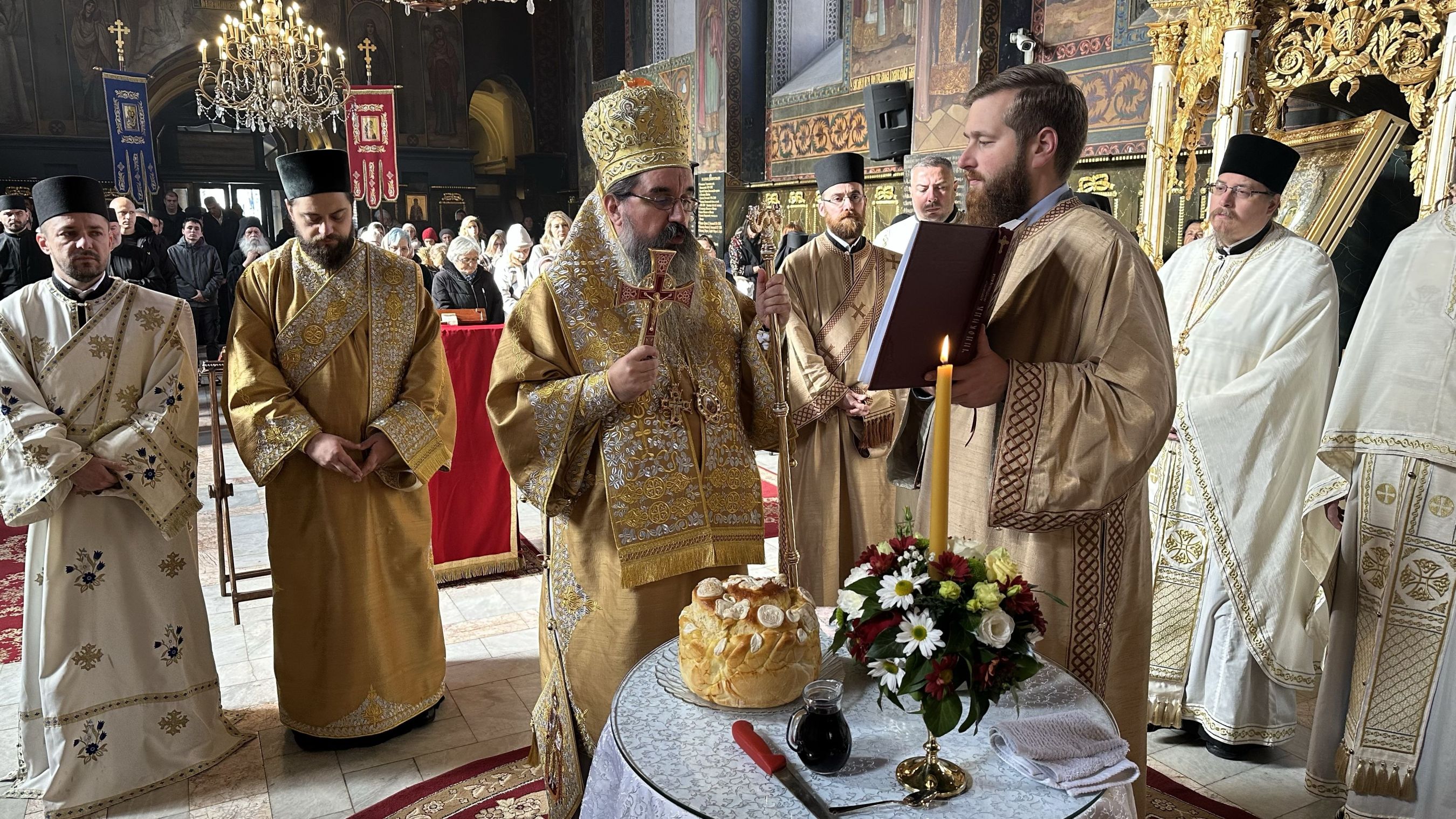 Празничном беседом, после читања светог Јеванђеља, присутнима се обратио протојереј Ђорђе Стојисављевић (ВИДЕО), а након што су освештани славски дарови, свештенству, гостима и верном народу, поздравно слово и речи благодарности упутио је епископ Јеротеј: