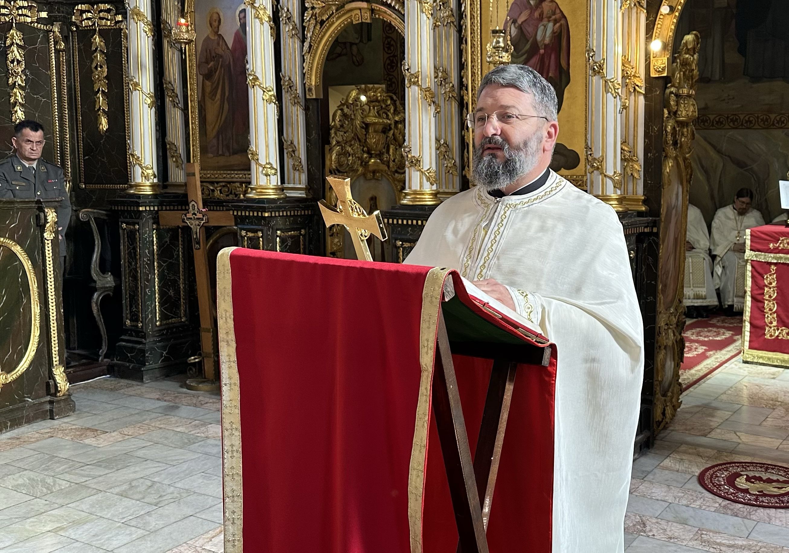 „Благодарим свима што нас је све овде данас сабрао Свети краљ Стефан Дечански. Благодарим свим оцима који су дошли са разних страна, пре свега оцу Ђорђу, и благодарим Патријарху Порфирију, који је дао благослов да они дођу и саслужују данас овде, благодарим и свим другим оцима и свима вама, браћо и сестре, који сте овде дошли да прославимо Светог краља Стефана Дечанског, великог угодника Божијег. Док је краљ Стефан владао као краљ српски, он се брину о свом српском народу, бранио га и давао му пример у сваком смислу – и као владар и као хришћанин. Пример је давао својом трпељивошћу и послушношћу вољи Божијој, јер је дуготрпељиво и у тишини подносио све што му је од Господа долазило. Он је дан данас остао са нама, пре свега својом молитвом за српски род и српску државу, али и оставивши нам своју дивну светињу манастир Високе Дечане“.