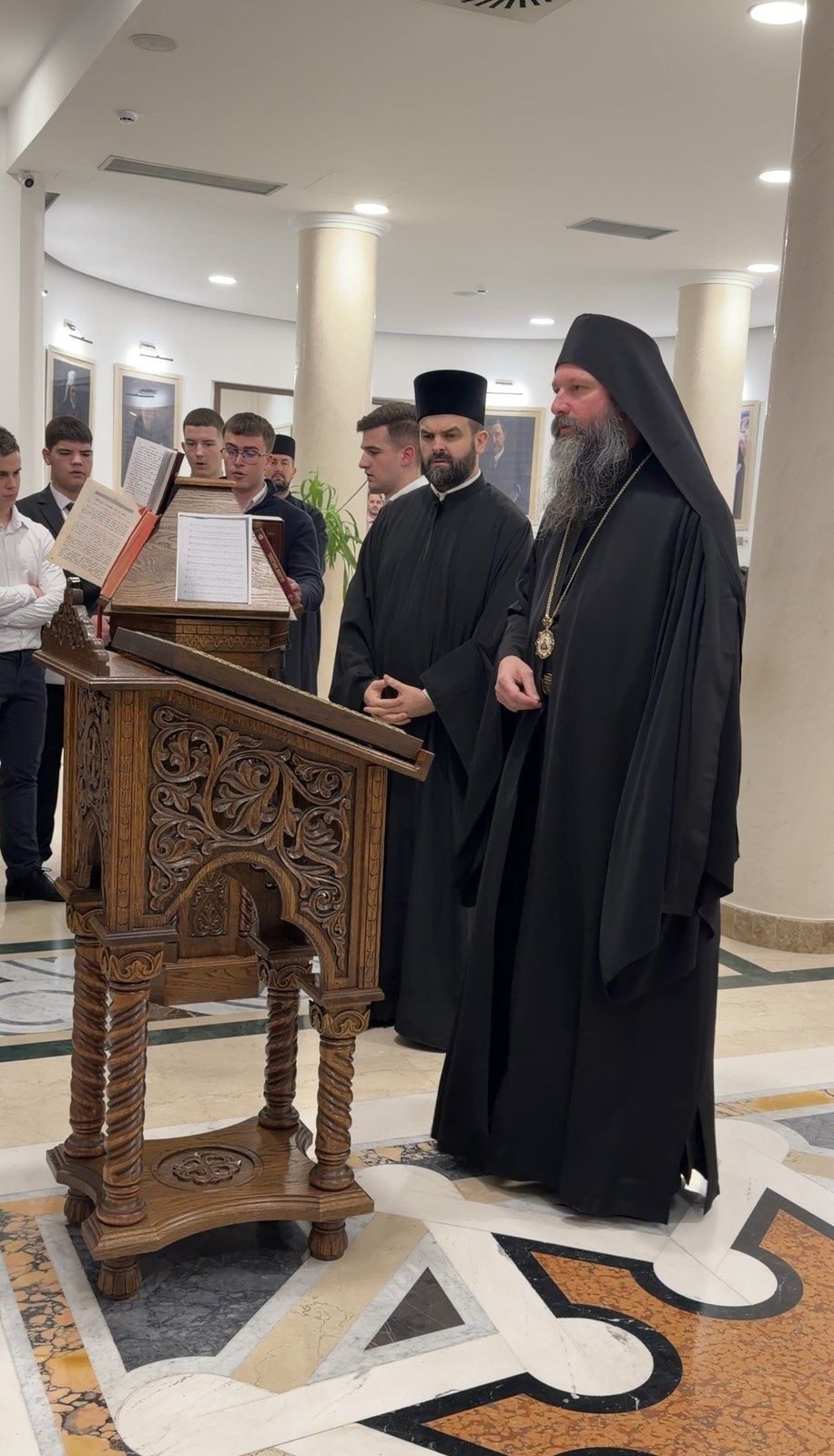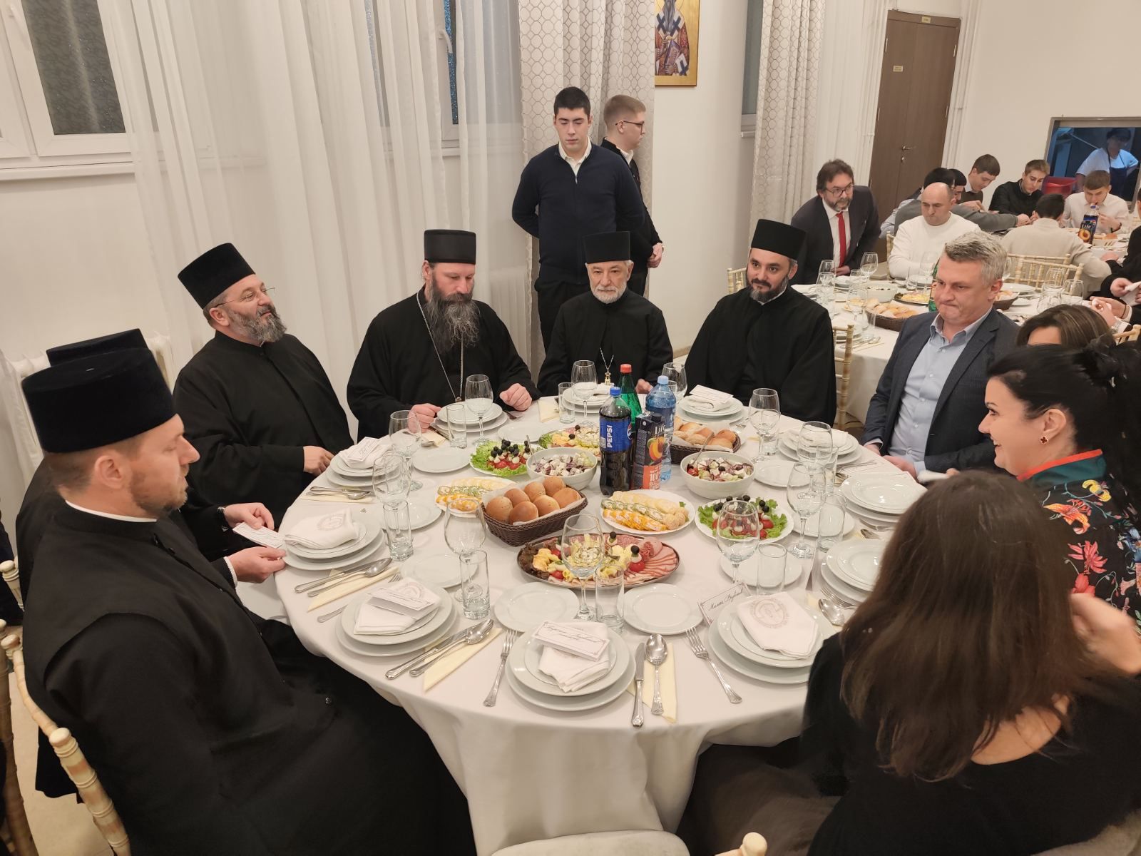 Вечерњем богослужењу су молитвено присуствовали и: архимандрит Нектарије, главни секретар Светог Архијерејског Синода; архимандрит Данило, директор Патријаршијске управне канцеларије; протојереј Ђорђе Стојисављевић, шеф Кабинета Патријарха српског; протојереј-ставрофор др Драган Протић, бивши ректор Богословије Светог Саве; протођакон Драган Радић, старешина храма Светог Саве на Врачару; и јереј Немања Калем, бивши професор Богословије у Београду.