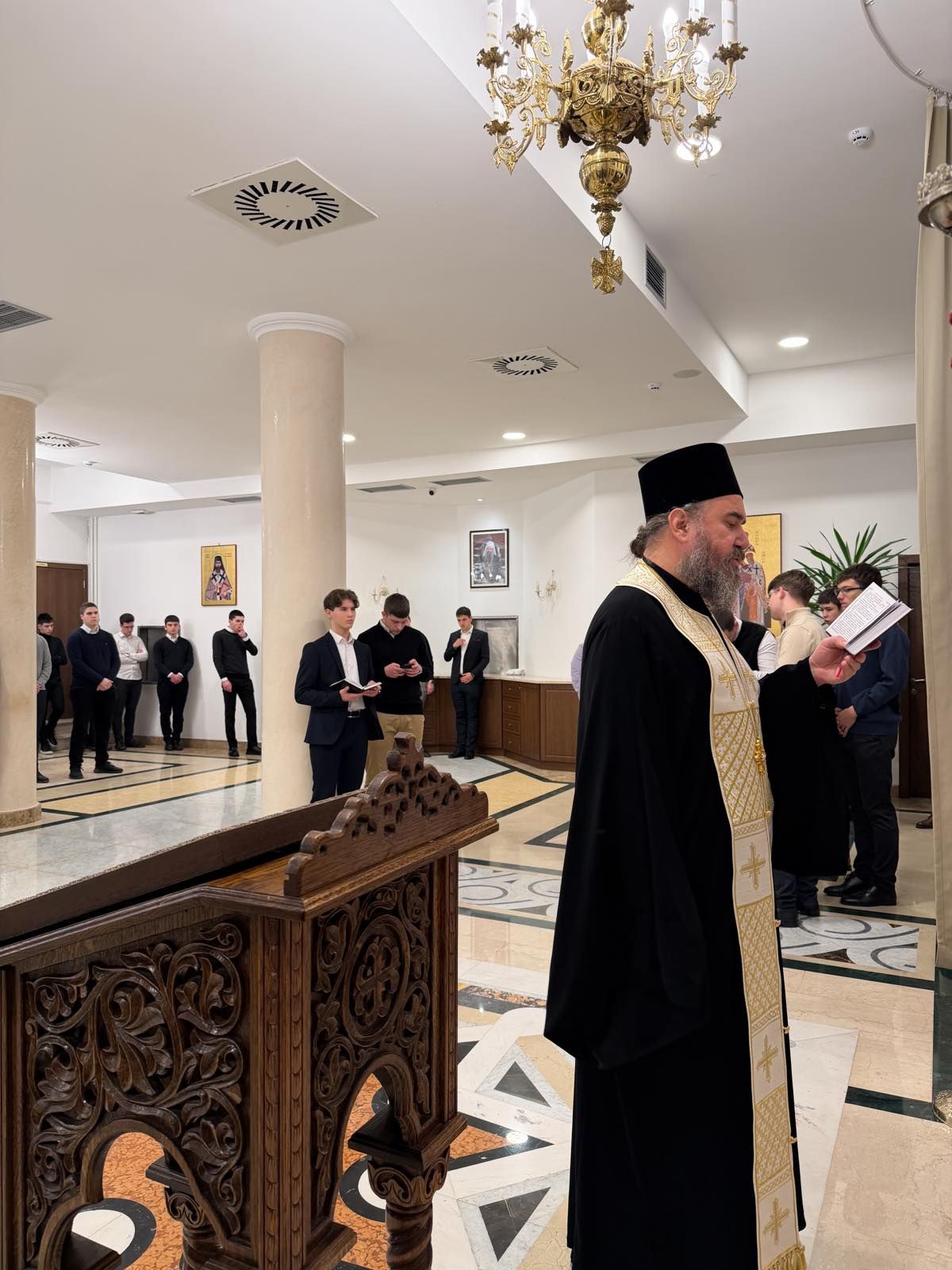 Преосвећени викарни Епископ новобрдски г. Иларион је том приликом поздравио све професоре, запослене и ученике тог знаменитог богословског училишта и пожелео Богом благословен почетак поста: