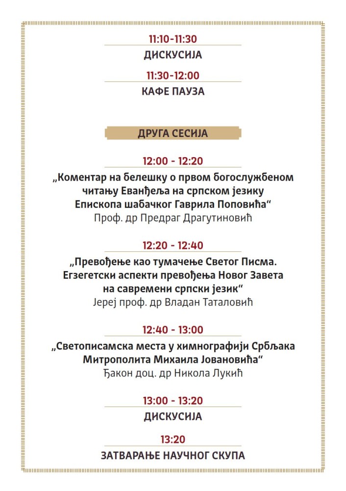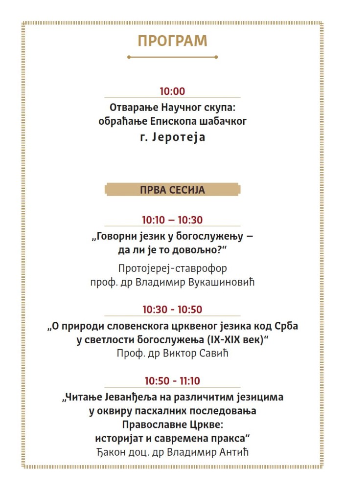 Епархија шабачка, поводом великом јубилеја – 160 година од првог богослужбеног читања Светог Јеванђеља на савременом српском језику, организује 16. децембра 2025. године у хотелу „Слобода“ у Шапцу научни скуп „У почетку бјеше ријеч...“ (Јн 1, 1).