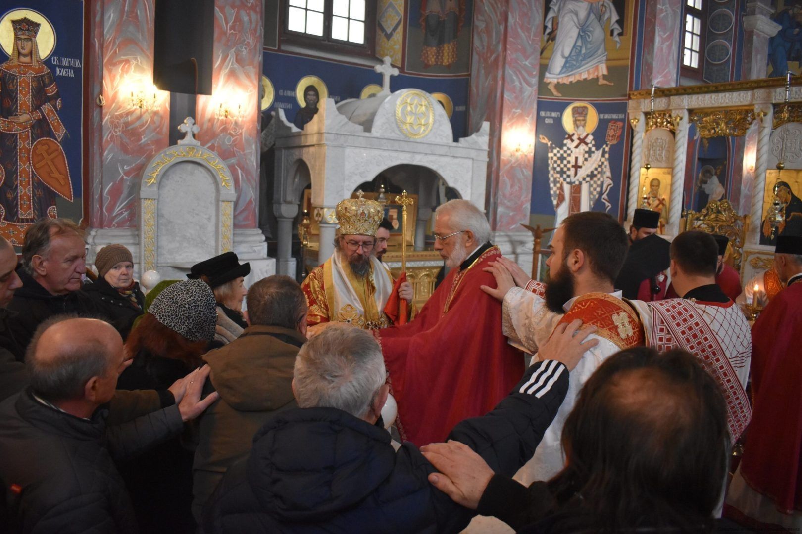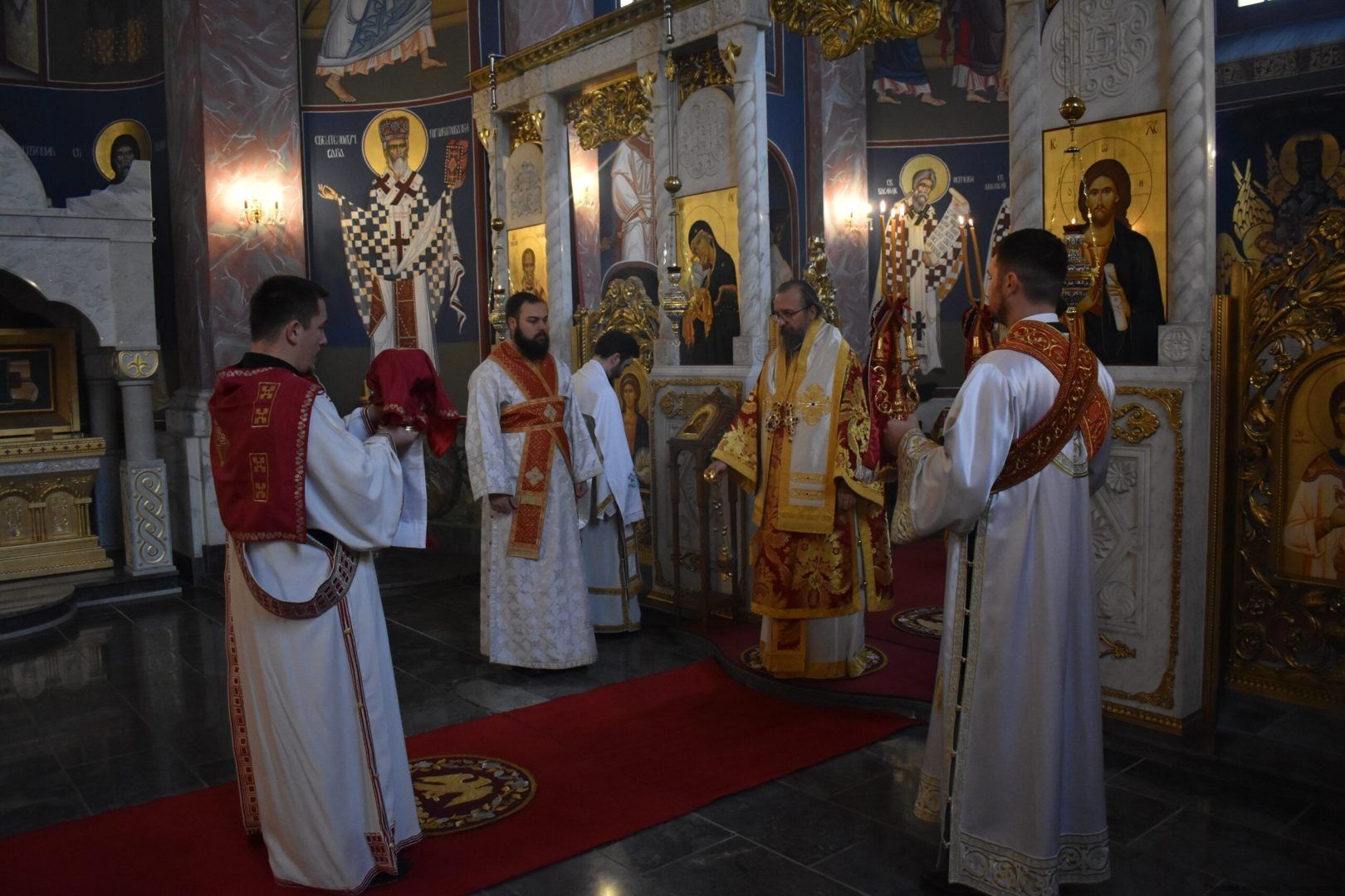 Саслуживалу су: протопрезвитери-ставрофори Милош Весин и Радослав Анђелић, протопрезвитер Саша Лончина, презвитери Марко Врањеш и Душко Живанић и ђакон Момир Ђукић. По читању јеванђељског зачала присутним верницима се обратио протопрезвитер-ставрофор Милош Весин, чију беседу можете преслушати ОВДЕ.