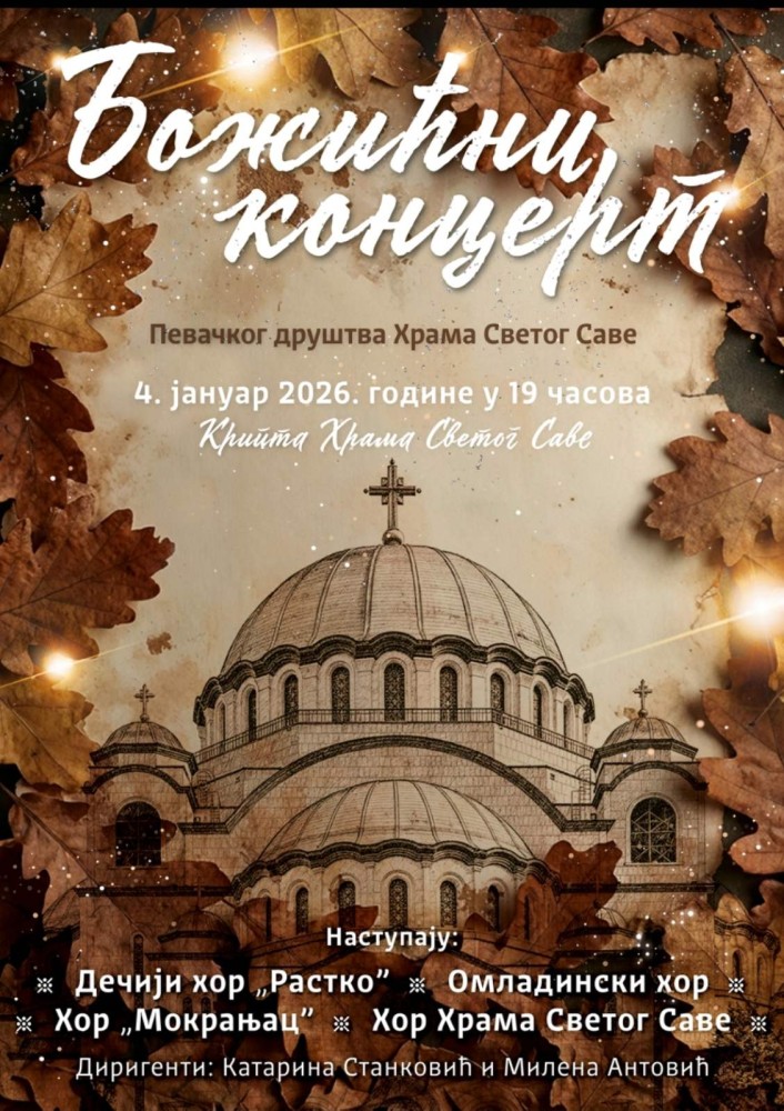 — Захваљујемо свима који су својим учешћем, молитвом и подршком допринели овом признању, диригентима, хорским певачима, братству храма Светог Саве, као и верној публици. Божићни концерт представља благословени увод у радост празника Рођења Христовог и прилику да се, кроз појање и молитву, заједно припремимо за сусрет са најрадоснијим даном хришћанске године — поручују из Певачког друштва храма Светог Саве и позивају верни народ и љубитеље духовне музике на традиционални Божићни концерт, који ће се одржати у суботу, 4. јануара 2026. године, са почетком у 19 часова у крипти храма Светог Саве на Врачару.