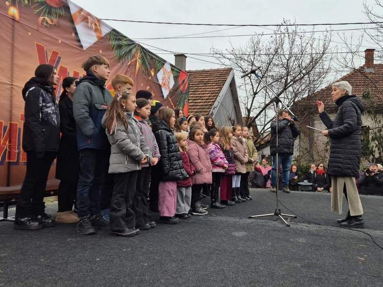 – Захваљујући вама ми се радујемо што сте вашом љубављу загрејали наша срца, што радујете све нас, а посебно вашу драгу диригенткињу Наташу, што чујемо да гласови сазревају, што видимо да се хор умножава, а то нам даје радост и наду да ће и наш велики хор у вама имати добро појачање. После беседе, чланови Дечјег хора символично су везали владику Илариона у духу празника, а он се дрешио божићним пакетићима.