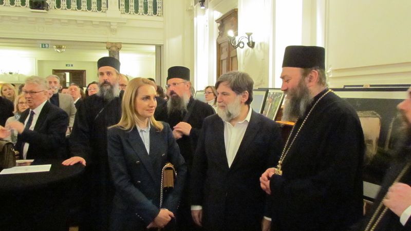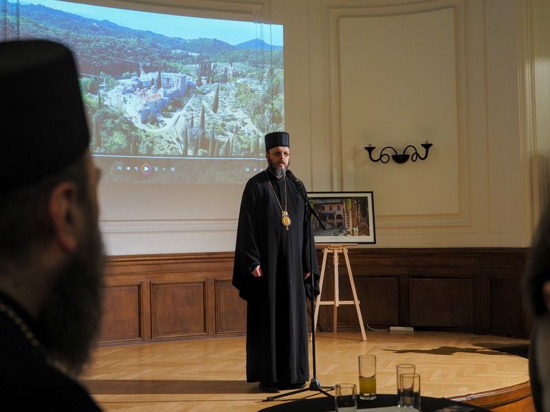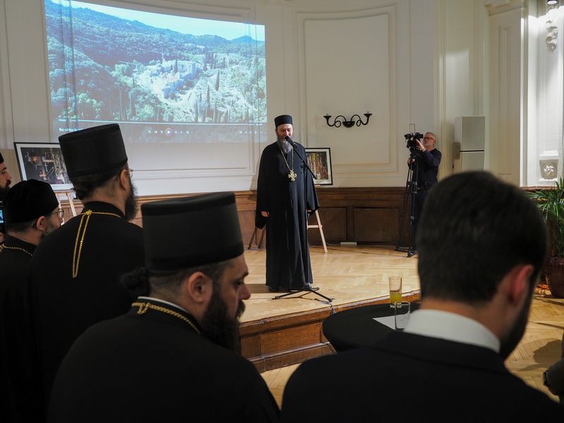 Поздравну беседу изговорио је Његово Преосвештенство Епископ мохачки и викар Митрополита бачког г. Дамаскин, док је изложбу отворио високопреподобни игуман Хиландара архимандрит Методије. Догађају су присуствовали: Његово Преосвештенство Епископ осечкопољски и барањски г. Херувим; свештеници и ђакони Епархије бачке и Епархије аустријске; г. Марко Благојевић, амбасадор Републике Србије у Аустрији; г. Синиша Бенцун, амбасадор Босне и Херцеговине у Аустрији; г. Денис Шулић, министар трговине и туризма Републике Српске; проф. др Жарко Обрадовић, амбасадор – стални представник Републике Србије при ОЕБС-у и другим међународним организацијама у Бечу; г. Младен Филиповић, шеф Представништва Републике Српске у Аустрији; др Ненад Иванишевић, покрајински секретар Аутономне покрајине Војводине за привреду и туризам; г. Марко Ромић, председник Комисије за Хиландар Републике Српске; као и велики број угледних дипломата и личности из јавног и културног живота.
