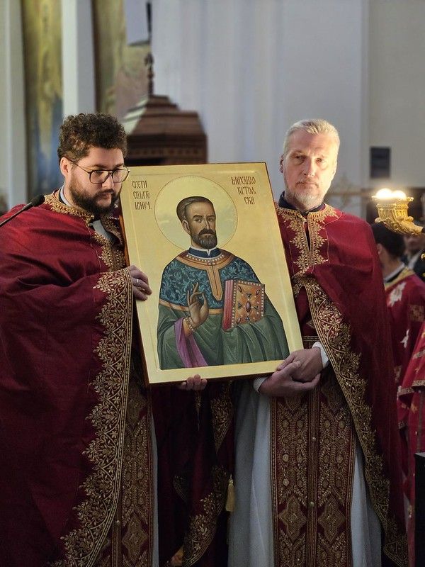 Радује се Бока Которска јер се сва твар освећује кроз подвиг синова Божјих. Радује се Црква Божја тој благовести коју нам је пре свега упутио митрополит Јоаникије, а потврдио наш Архијерејски Сабор, јер свака канонизација је нова благовест, нова радосна вест. Радује се Црква овде која се утврђује молитвама и подвигом светих мученика. Радују се његови преци и потомци, јер кроз подвиг једног од људи који угоде Богу, они бивају оправдање и за своје претке и за своје потомке пред Богом. Радујемо се и сви ми данас и благодаримо нашем домаћину на позиву да учествујемо на овом великом слављу.