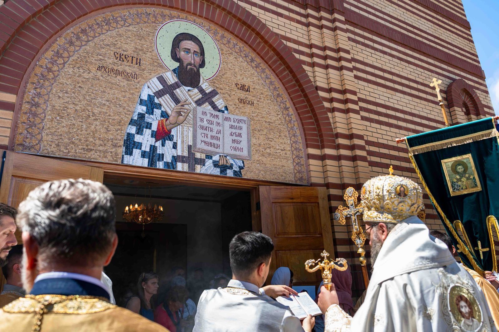 – Пример је његов остварења људског бића, узрастања и формирања назначеног Господом Богом свима нама људима. Тако ће у Српству синоним за свету православну веру, преображај и обожење у Христу постати реч Светосаваље, овековечивши тиме Светог Саву у духовном животу и стремљењу сваког од нас понаособ. Ево и разлога на темељу кога су наши стари подигли ову светосавску манастирску светињу, као и другу у Илајну. Да, да се дивимо и величанствености храмовног здања, али првенствено да се у њему сабирамо у слози, љубави, подршци једни другима и по својој људској моћи у Божјем благослову се посвећујемо и обожујемо – беседио је митрополит Силуан.