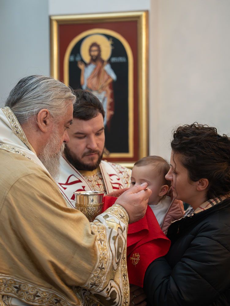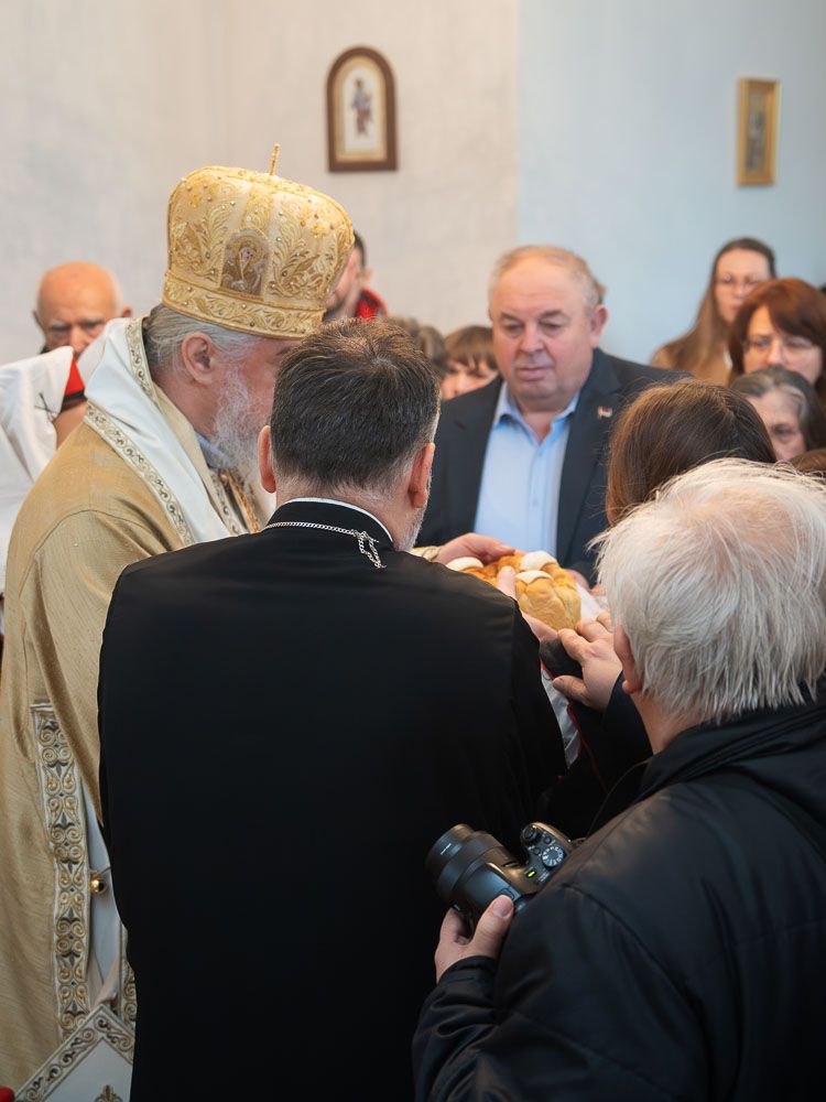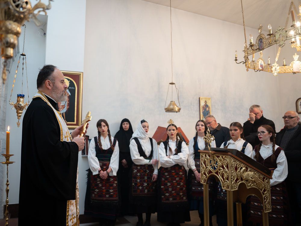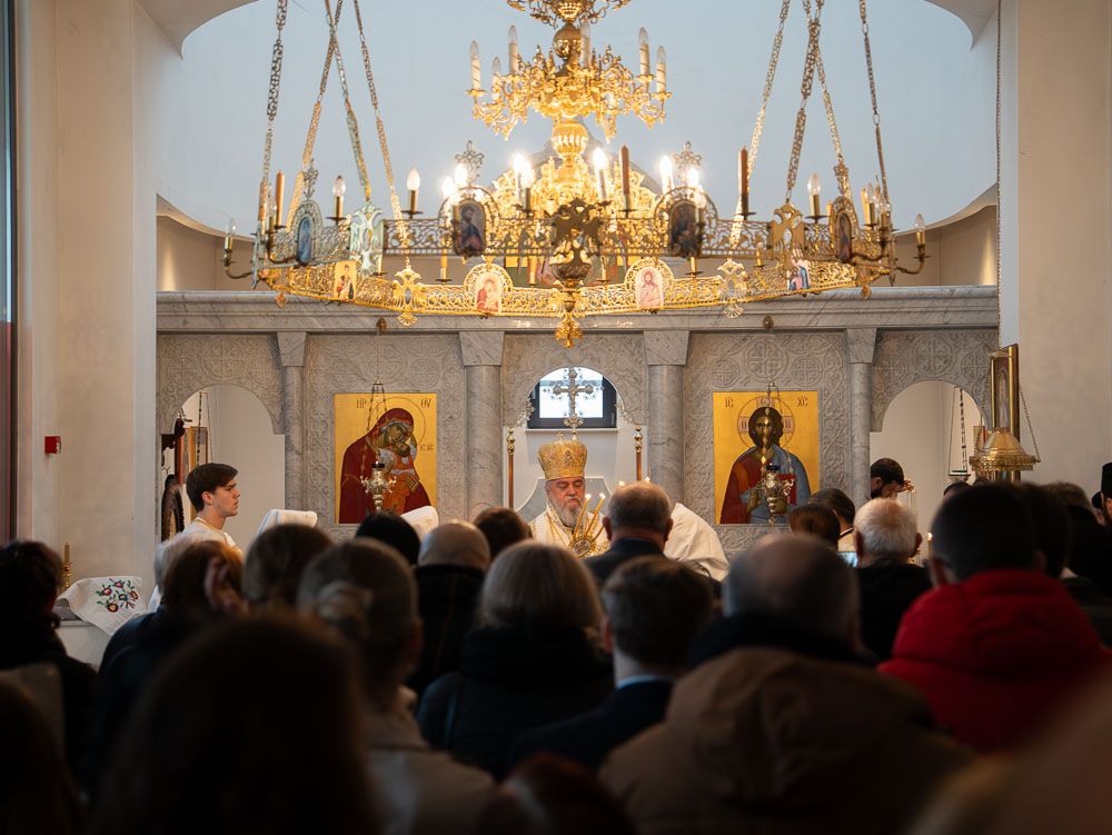 У молитвеном присуству ученика и наставника Гимназије, верног народа загребачке парохије, представника Амбасаде Републике Србије и Управе за дијаспору и Србе у региону Владе Републике Србије, епископу Кирилу су саслуживали свештеник Андреј Иваненко и ђакон Александар Лукић. Појање је предводио протојереј Зоран Радић, парох загребачки.