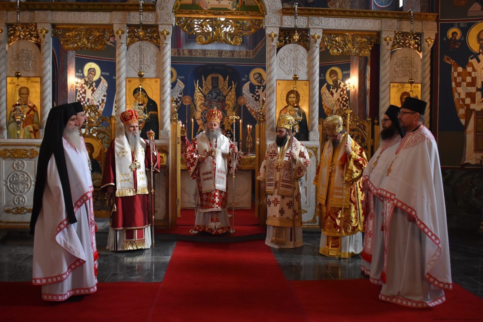 Евхаристијским сабрањем началствовао је Његово Високопреосвештенство Митрополит брегалнички г. Иларион уз саслужење преосвећене господе епископа осечкопољског и барањског Херувима и викарног јенопољског Никона, као и домаћина Високопреосвећеног г. Герасима, архимандрита Наума (Милковића), протопрезвитера-ставрофора Радојице Ћетковића и Милидрага Стокановића, јеромонаха Саве (Јаковљевћа) и јерођакона Гедеона (Врањеша).