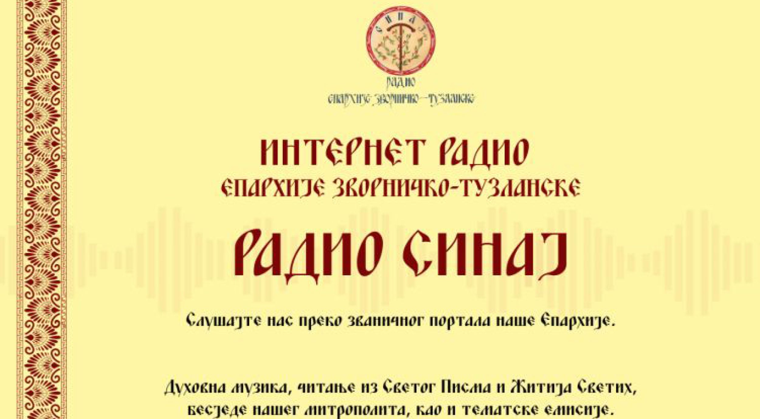 Са благословом Његовог Високопреосвештенства Митрополита зворничко-тузланског г. Фотија, 1. марта 2026. године са радом је отпочео интернет радио станица „Синај“, ново медијско гласило Епархије зворничко-тузланск е које је доступн на следеће линку: https://zvucnizid.com/SINAJ/