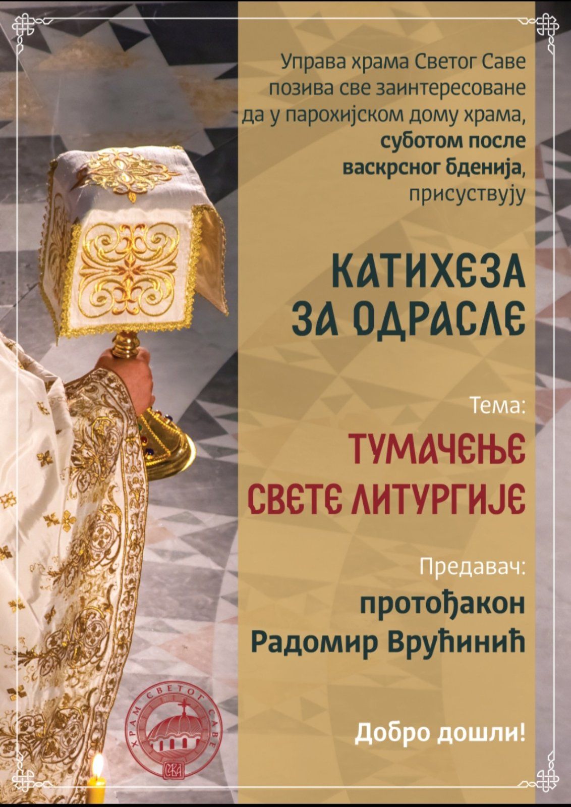 О свим даљим активностима везаним за катихизис можете се информисати на званичном сајту и инстаграм профилу храма Светог Саве. Добро дошли!