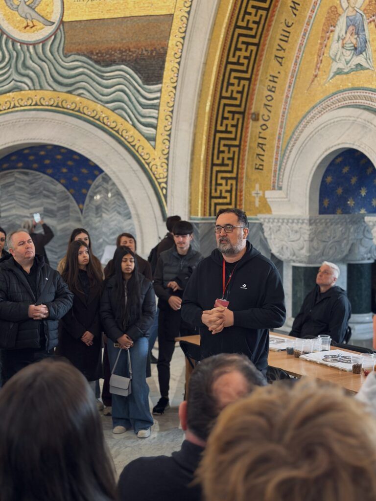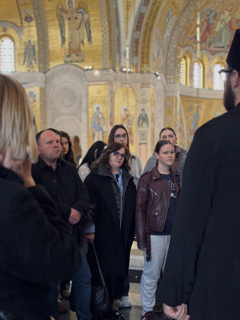 После светеЛитургије, у име свештеног братства Светосавског храма, ученике и њихове вероучитеље је дочекао и поздравио свештеник Димитрије Касапис. По обиласку заветног храма српског народа, у Парохијском дому је уприличено послужење уз пријатне и богоугодне разговоре са домаћинима.