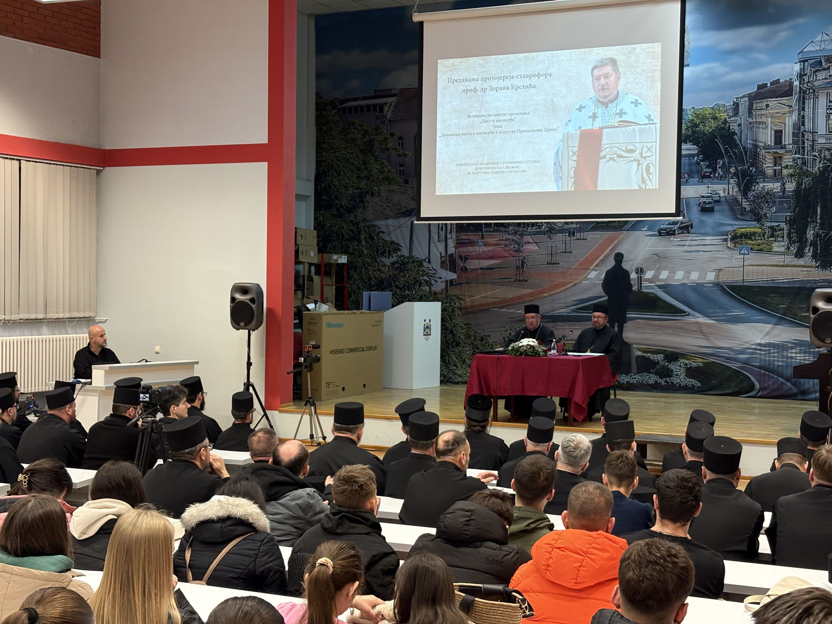 У организацији Епархије шабачке, 26. марта 2026. године у амфитеатру Академије струковних студија у Шапцу је одржано друго предавање великопосног циклуса предавања „Пост и милосрђе“.