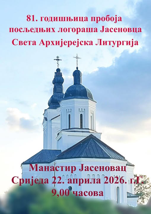 Епархија славонска позива верни народ и све људе добре воље да 22. априла 2026. године узму молитвено учешће у светој Литургији поводом осамдесет и прве годишњице пробоја последњих јасеновачких логораша.