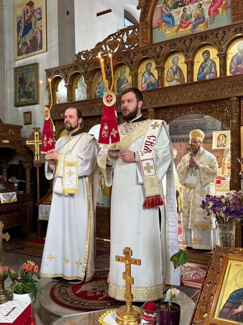 У присуству бројног верног народа, саслуживали су и: протојереј-ставрофор Тома Ћирковић; протојереј Горан Шљивић, старешина храма у Цељу; ђакони Александар Лукић и Роман Криночкин, и свештеник Дејан Мандић, старешина копарског храма, који је током богослужења произведен у чин протојереја.
