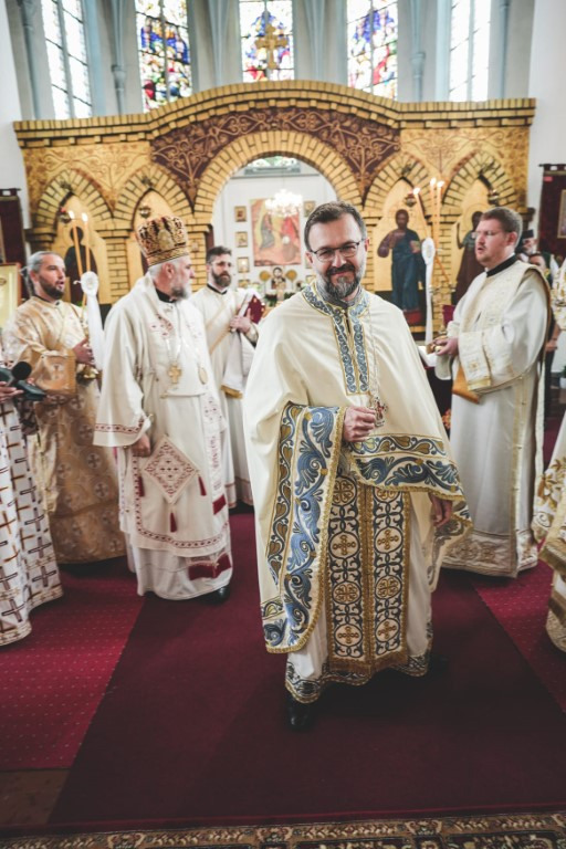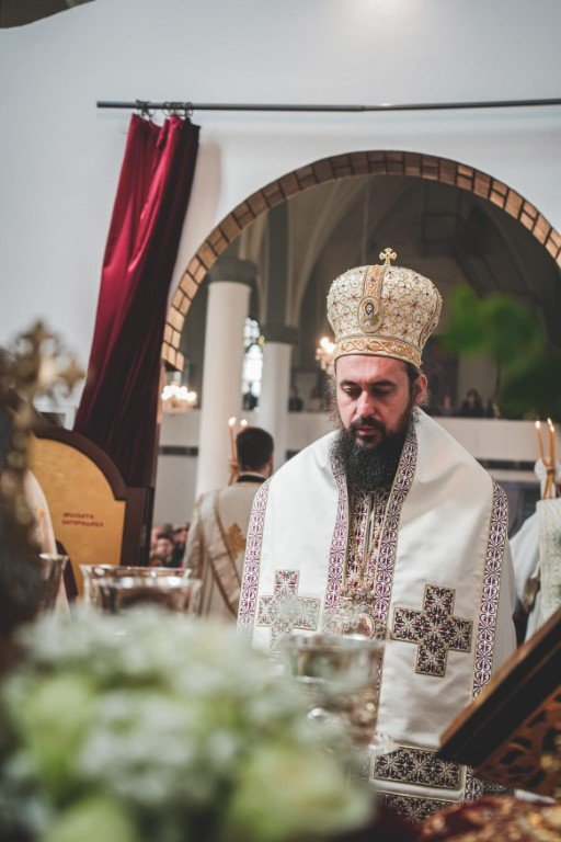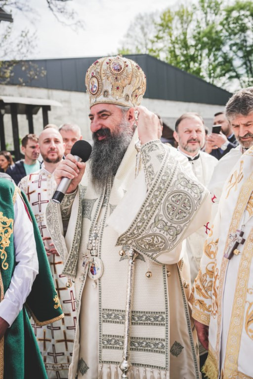 -Христос васкрсе! Хвала Господу, Који је ради нас и ради нашега спасења побједио смрт и даровао нама живот. На данашњи дан, браћо и сестре, сабрали смо се у овом храму да прославимо једног проповједника Васкрсења Христовог, једног апостола наших дана. Са нама су данас, као што можете да видите, млади владика Јустин из Париза, и наш брат владика Пимен из Македоније. Ту смо владика Јован и ја, уз мноштво наших дивних свештеника из наше Епархије. Ту сте ви, као народ Божји, сабрани, као пшеница која је свугдје посијана, а која се овдје доноси да би постала један хљеб, чисти хљеб који се Христу Богу приноси…