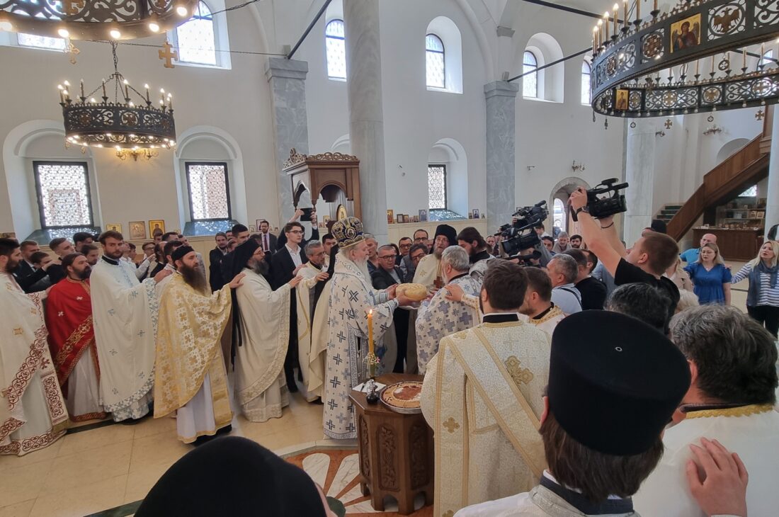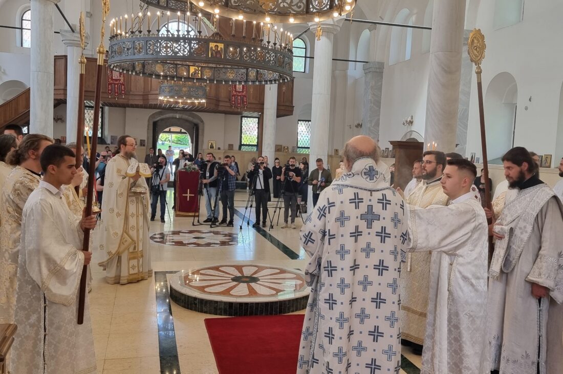 Свету Литургију у храму Светог Ђорђа служио је Његово Преосвештенство Епископ рашко-призренски г. Теодосије уз саслужење великог броја свештеника и свештеномонаха из више епархија Српске Православне Цркве.