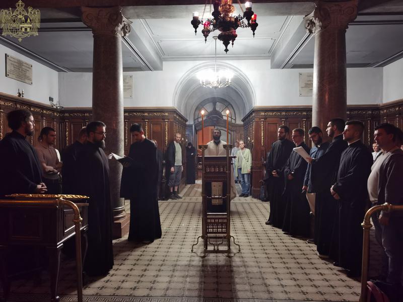 У навечерје празника Преподобног Јустина Ћелијског, 13. јуна 2023. године, у Саборном храму у Новом Саду служено је свеноћно бденије са светом Литургијом.