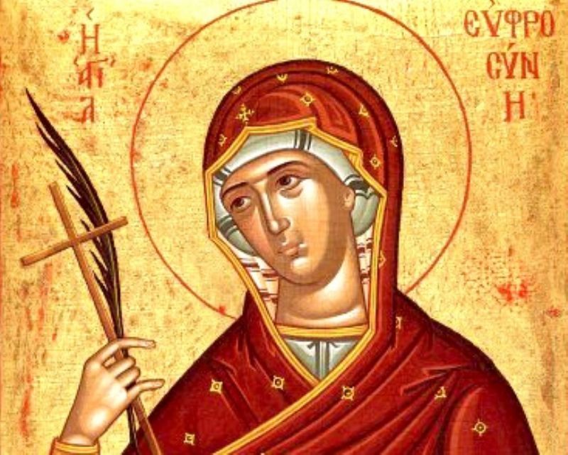 Када Ефросинији би дванаест година, њена се мајка престави из овог живота; а Пафнутије продужи поучавати своју кћер Светоме Писму. Научивши се читању Светога Писма, девојчица се усрдно бављаше читањем светих књига. И кроз целу Александрију се пронесе глас о њеној благоразумности и лепоти. Због тога многи високородни и богати грађани утркиваху се ко ће успети код њеног оца да је испроси за свога сина. Но Пафнутије им одговараше: Нека буде онако како Господ хоће. Међутим један човек који превазилажаше све својим високородством, чином, богатством и славом, умоли Пафнутија да своју кћер да за његовог сина; и Пафнутије пристаде. Они се договорише и одредише и сам дан свадбе. Но пре свадбе Пафнутије оде са ћерком у манастир код гореспоменутог игумана, кога је волео као оца свога, и рече му: Доведох к теби, свети оче, моју кћер коју ми Бог подари на твоје молитве, да се помолиш за њу, јер хоћу да је удам. – Игуман благослови Ефросинију, па севши разговараху с Пафнутијем о спасењу душе, а кћер његову поучаваше целомудрију, смирености, милостивости, страху Божјем и љубави Божјој. Све ове речи мудра и благоразумна девојка слагаше у срцу свом; а беше јој осамнаест година. Игуман их задржа у гостима, и Пафнутије остаде са својом кћерком три дана у манастирској гостопримници. У току тих дана они свакодневно присуствоваху црквеним богослужењима; и посматрајући подвиге монашке, они се дивљаху њиховом животу, и говораху у себи: Благо овим људима, јер они и овде на земљи живе као анђели, и у будућем животу боравиће са анђелима. – И срце Ефросинијино поче се пунити божанственом жељом да подражава свети живот њихов. По истеку три дана Пафнутије рече игуману: Допусти нам, чеони оче, да ти се поклонимо, јер нам ваља ићи у град. – А Ефросинија припавши к ногама игуману, рече: Молим те, оче, помоли се за мене, да Господ спасе душу моју. – Игуман је благослови, говорећи: Боже, Ти знаш свакога човека пре рођења његова, постарај се Ти сам о овој слушкињи Твојој да се удостоји удела и награде са свима који су Ти отпамтивека угодили. – И поклонивши се игуману и братији, Пафнутије са ћерком оде у град. Овај праведни човек дубоко поштоваше монашки чин; и кад би на путу или у граду срео каквог монаха, он га је одводио својој кући, гостио га и молио да се помоли Богу за њега и његову кћер.