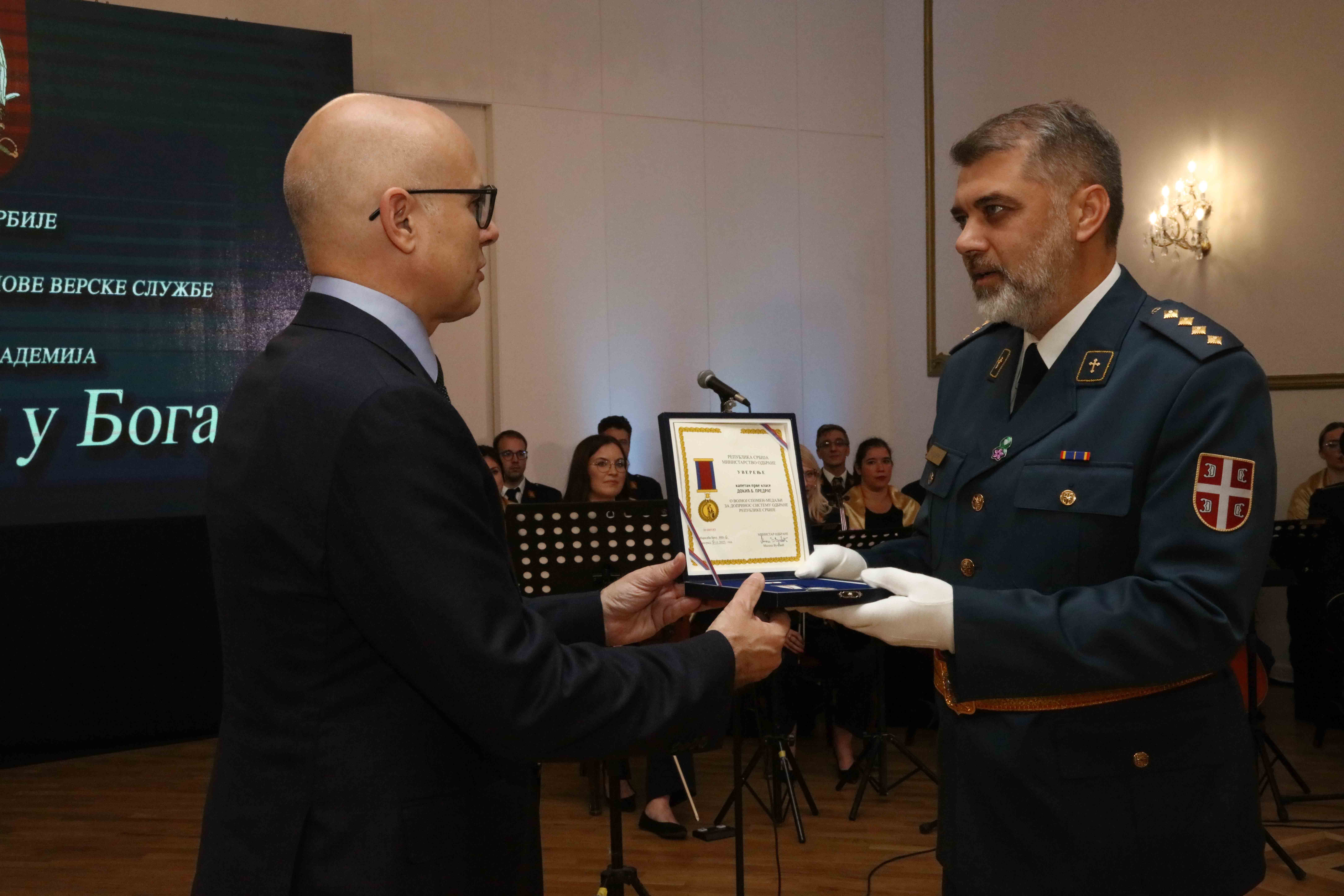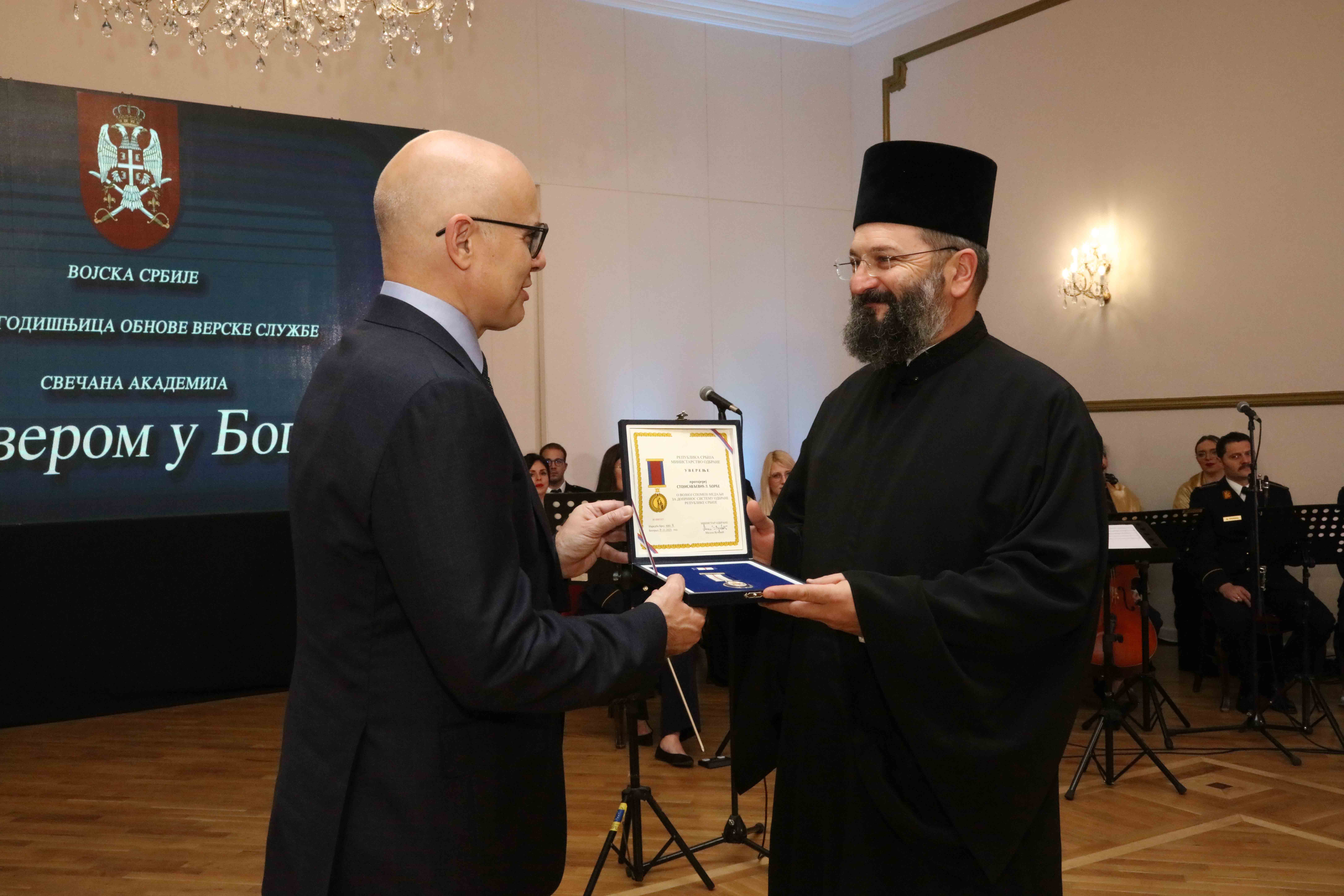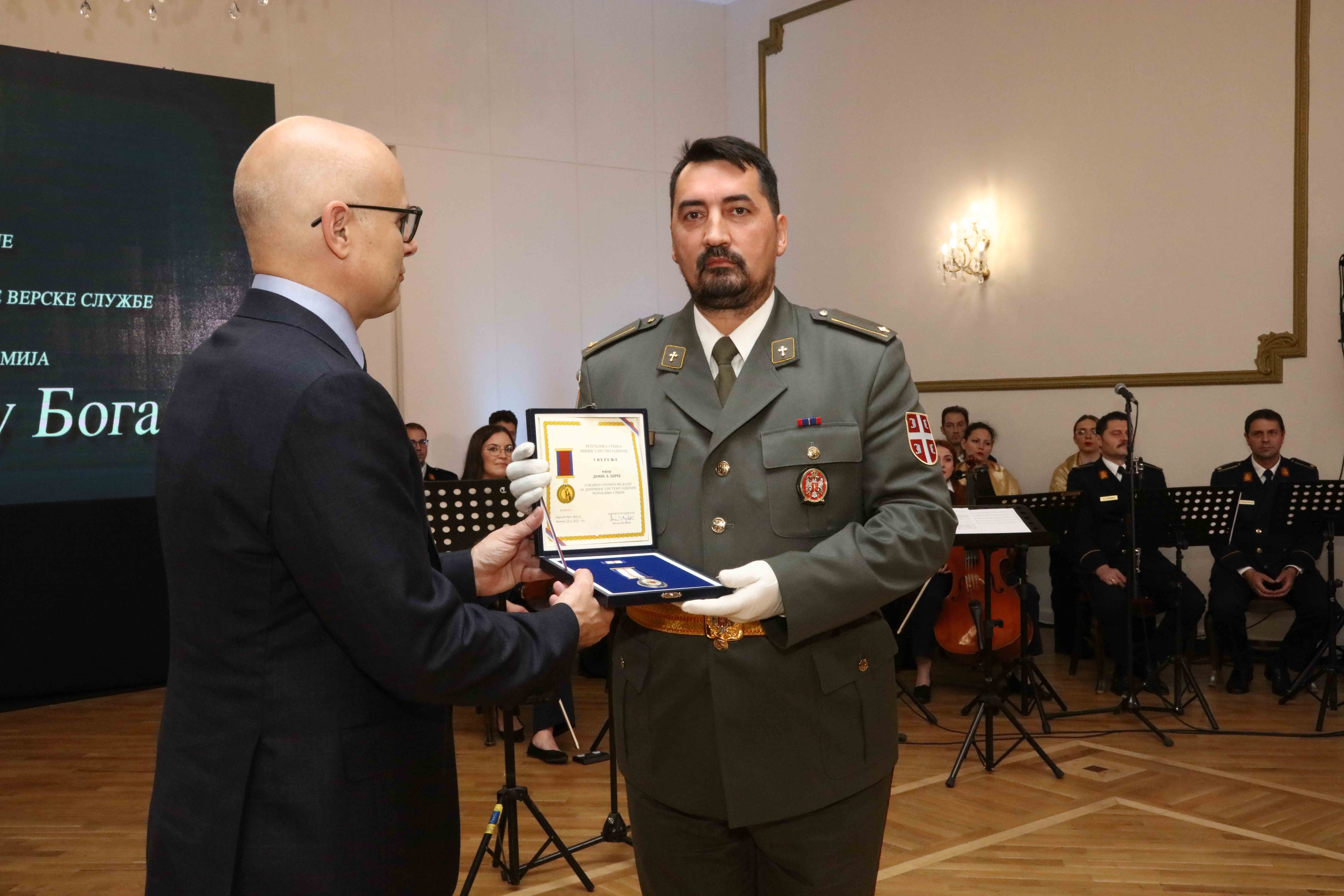 Свечаност је крунисана доделом признања заслужним појединцима за успешну реализацију активности из домена Верске службе од значаја за Војску Србије и систем одбране Републике Србије. Потпредседник Владе и министар одбране г. Милош Вучевић уручио је војне спомен-медаље за допринос систему одбране следећим војним свештеницима: потпуковницима Горану Аврамову, Слађану Влајићу и Мустафи Јусуфспахићу, мајорима Ђорђу Димићу и Немањи Петровићу, као и капетану прве класе Предрагу Докићу. Војна спомен-медаља за допирнос систему одбране наше земље додељена је и протојереју Ђорђу Стојисављевићу, шефу Кабинета Патријарха српског.