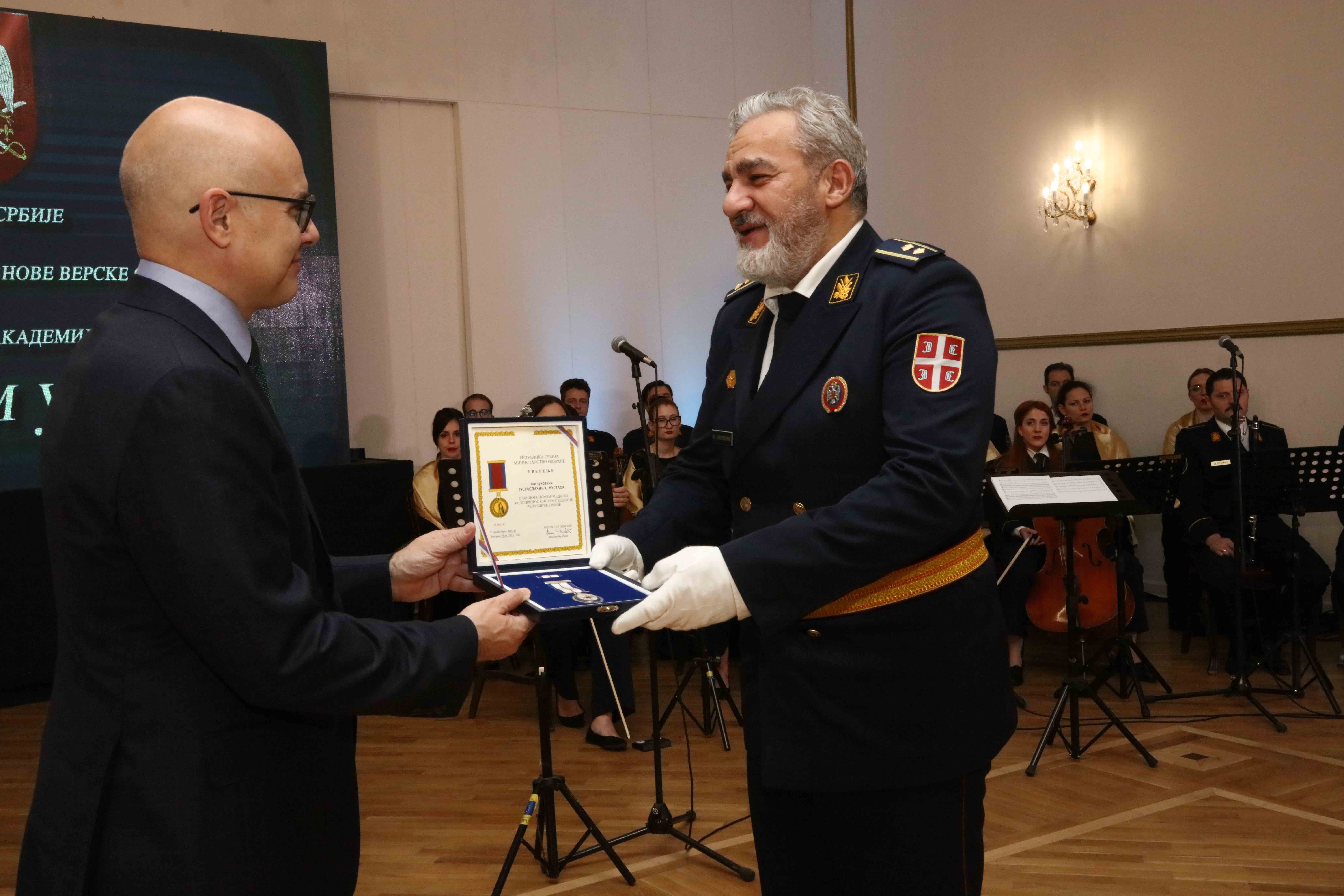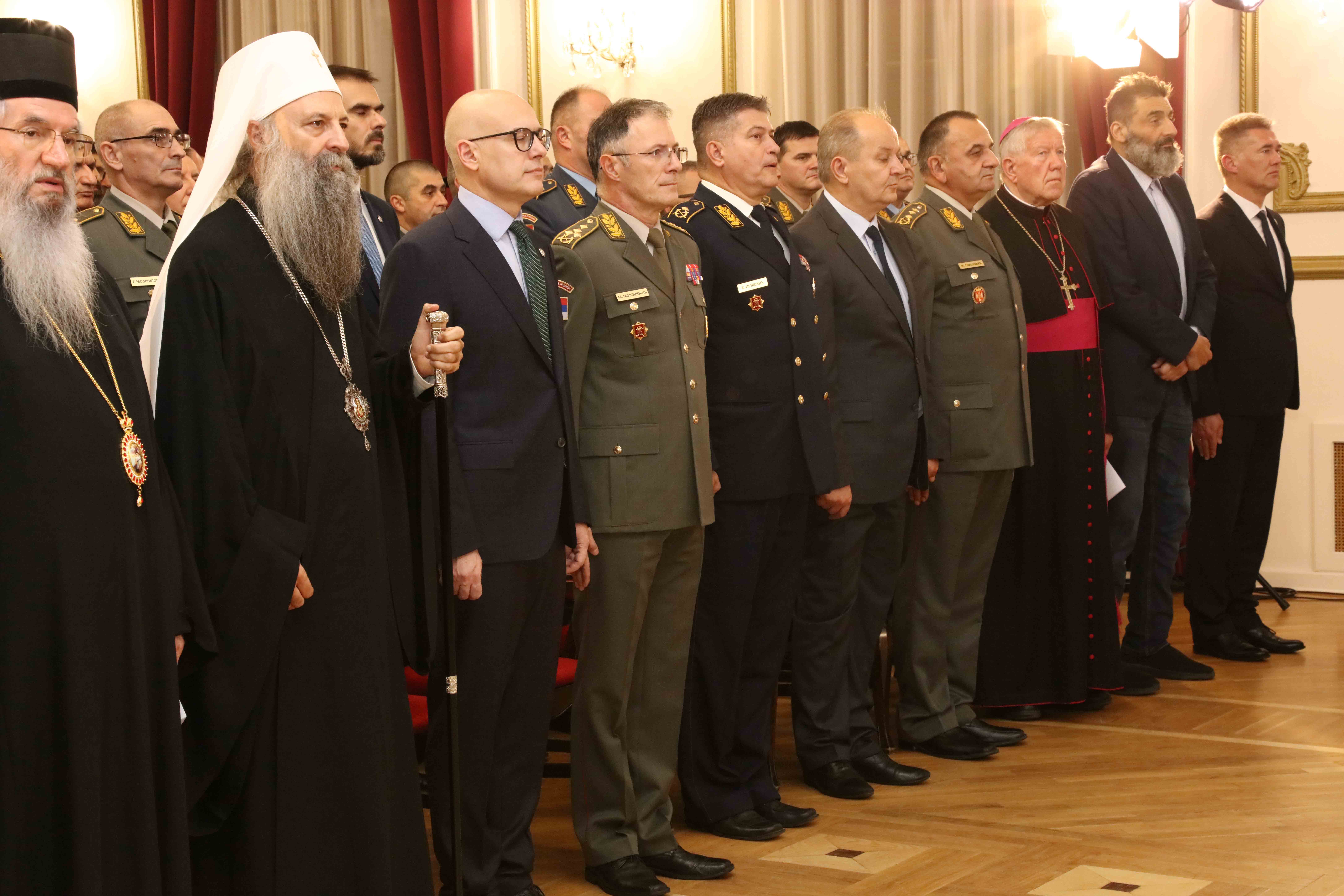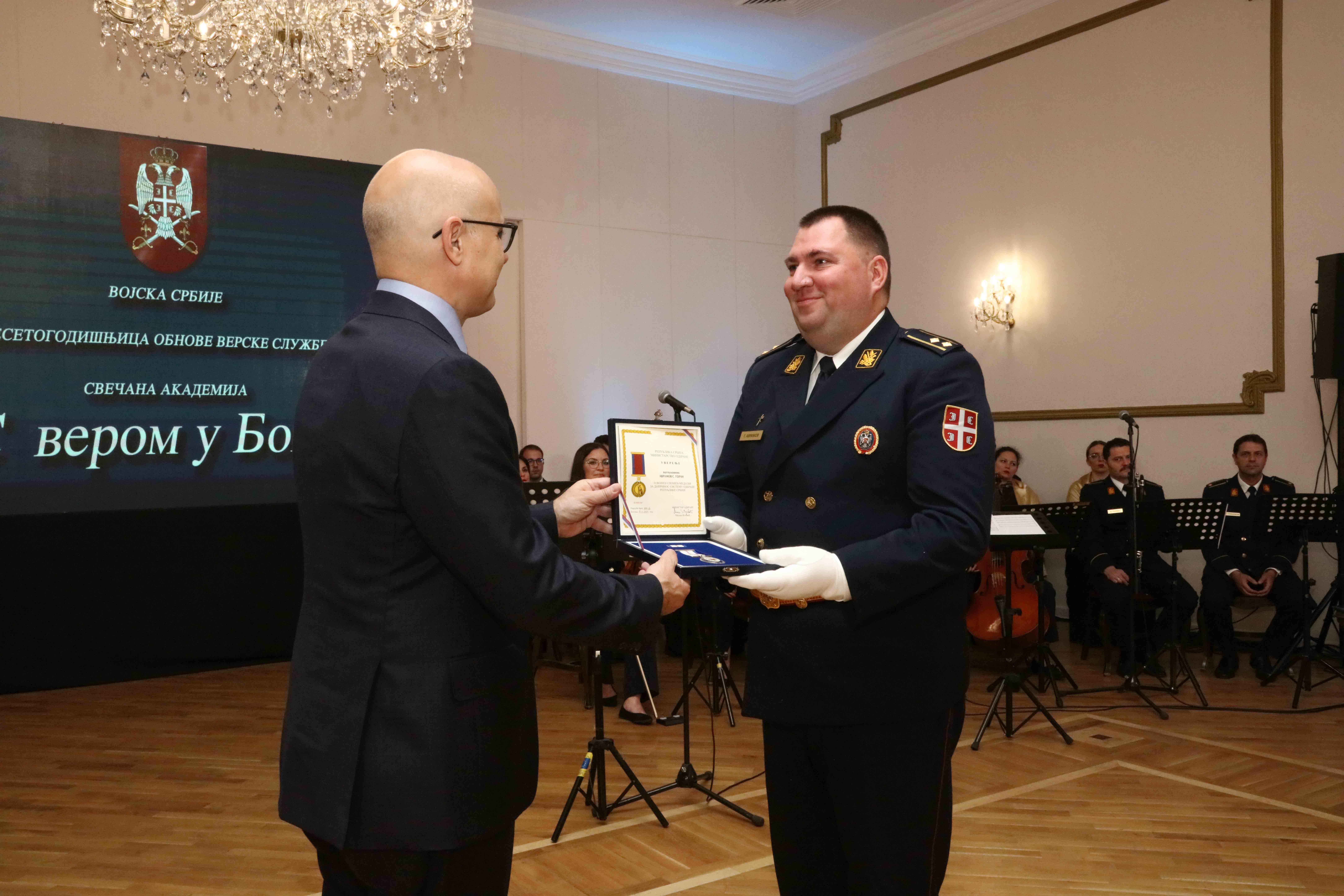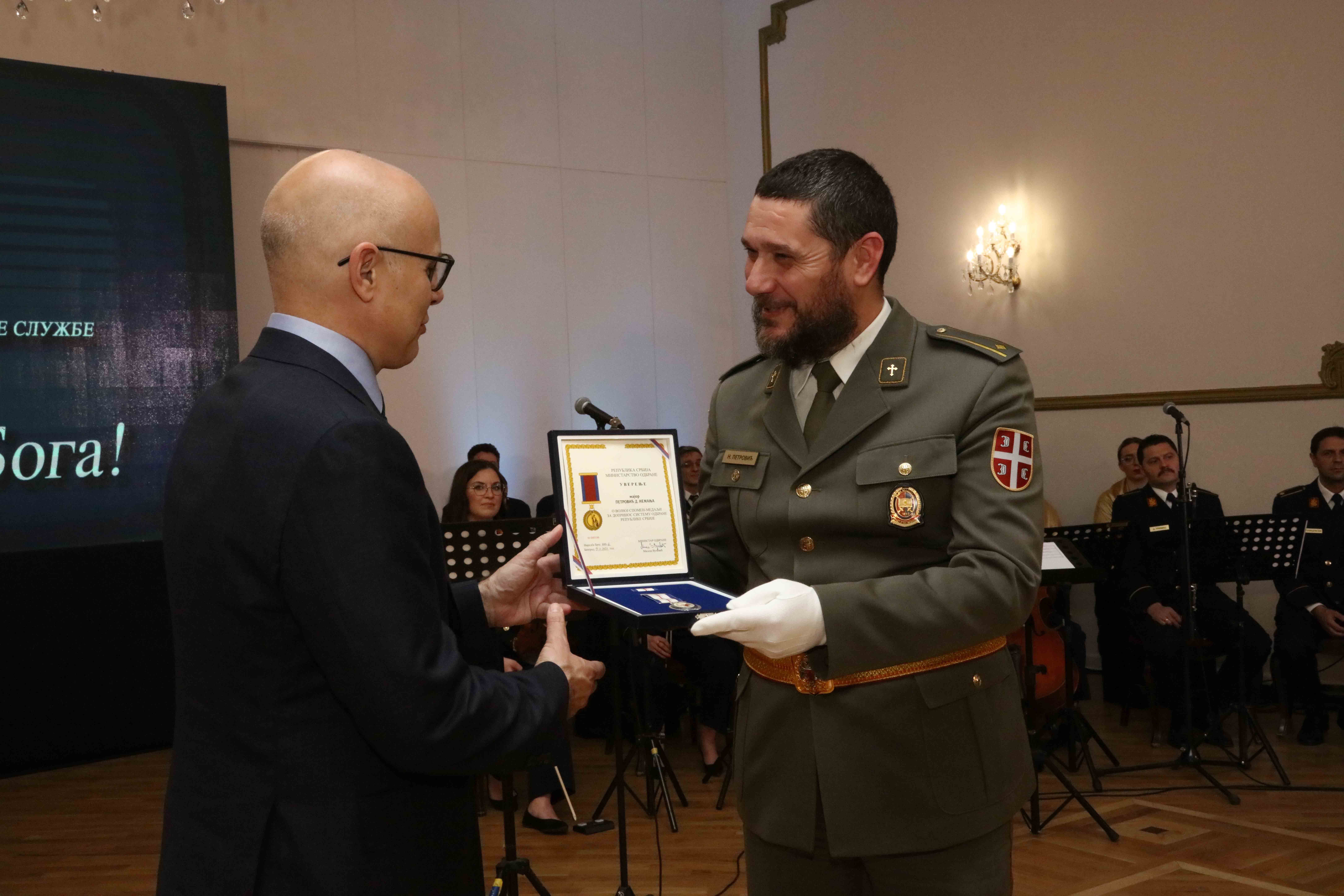 Свечаност је крунисана доделом признања заслужним појединцима за успешну реализацију активности из домена Верске службе од значаја за Војску Србије и систем одбране Републике Србије. Потпредседник Владе и министар одбране г. Милош Вучевић уручио је војне спомен-медаље за допринос систему одбране следећим војним свештеницима: потпуковницима Горану Аврамову, Слађану Влајићу и Мустафи Јусуфспахићу, мајорима Ђорђу Димићу и Немањи Петровићу, као и капетану прве класе Предрагу Докићу. Војна спомен-медаља за допирнос систему одбране наше земље додељена је и протојереју Ђорђу Стојисављевићу, шефу Кабинета Патријарха српског.