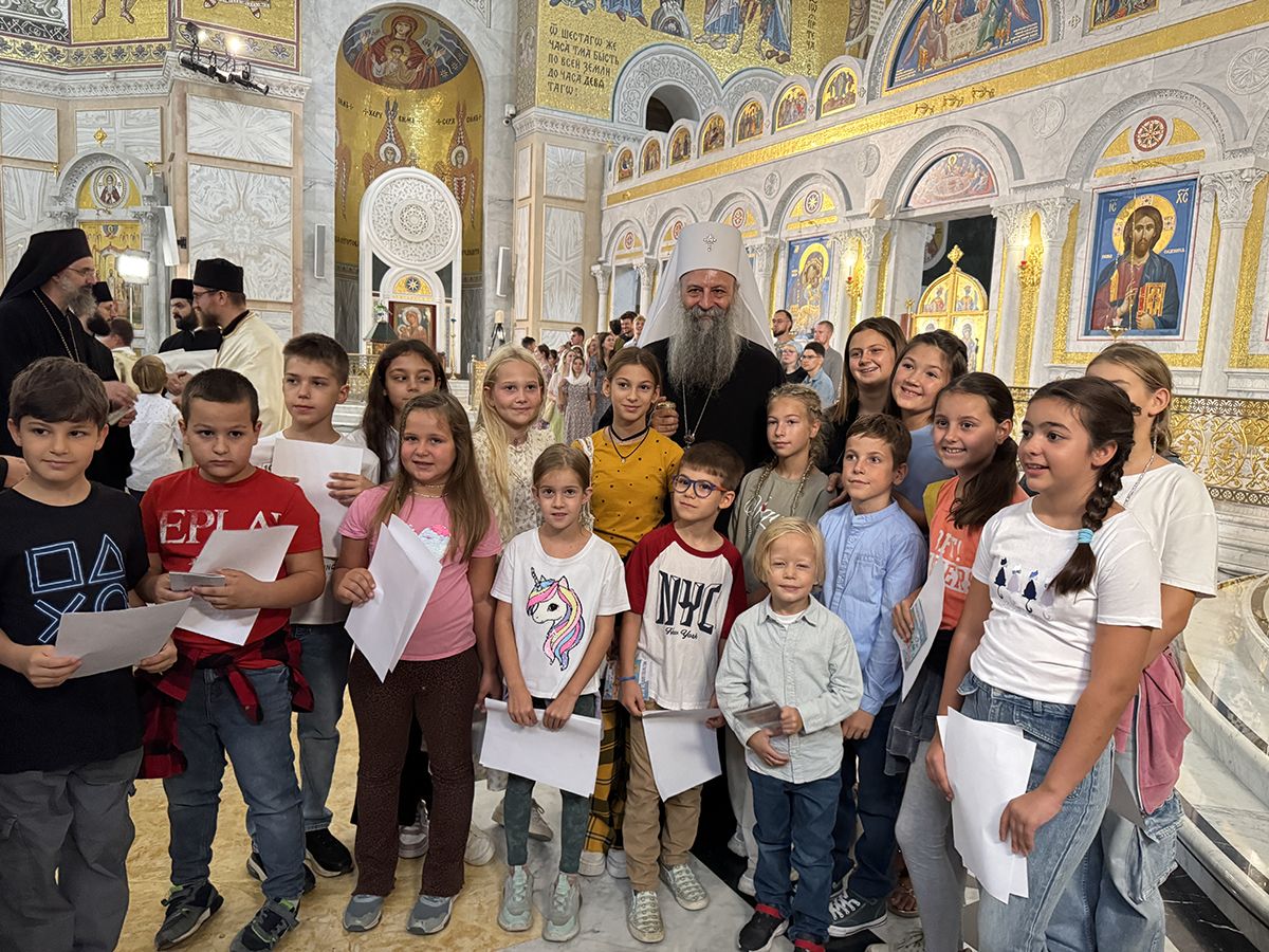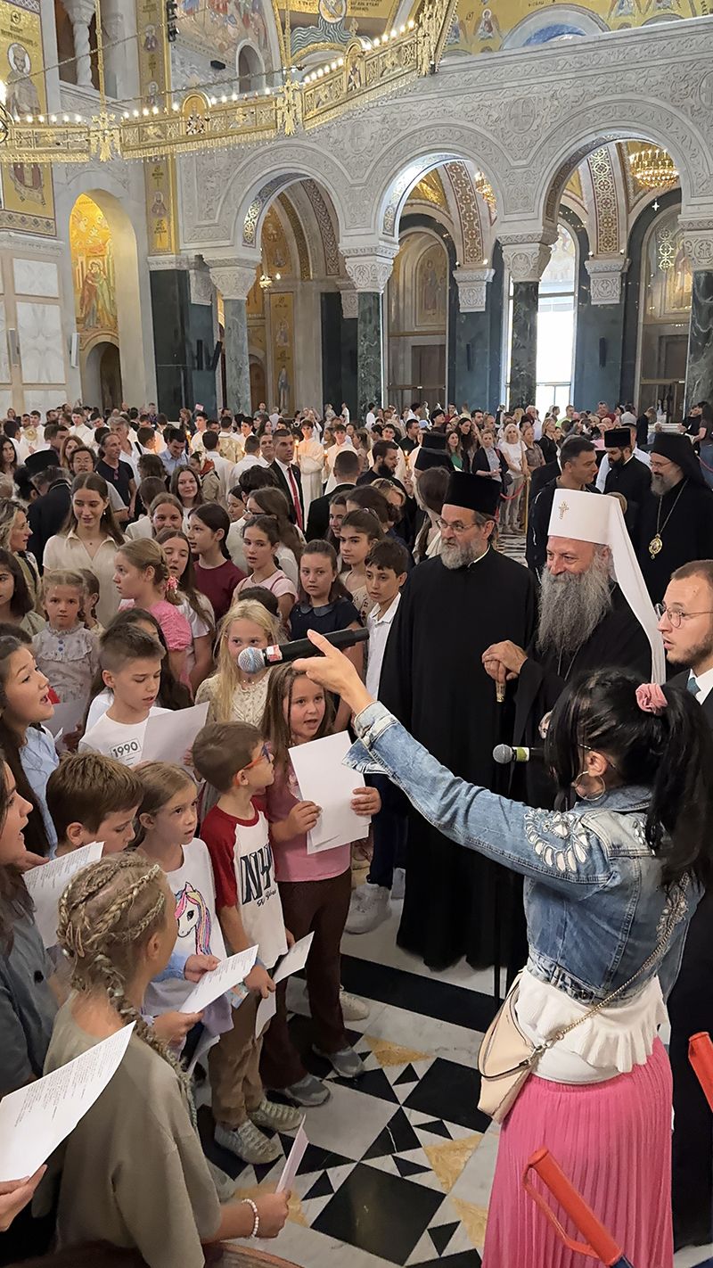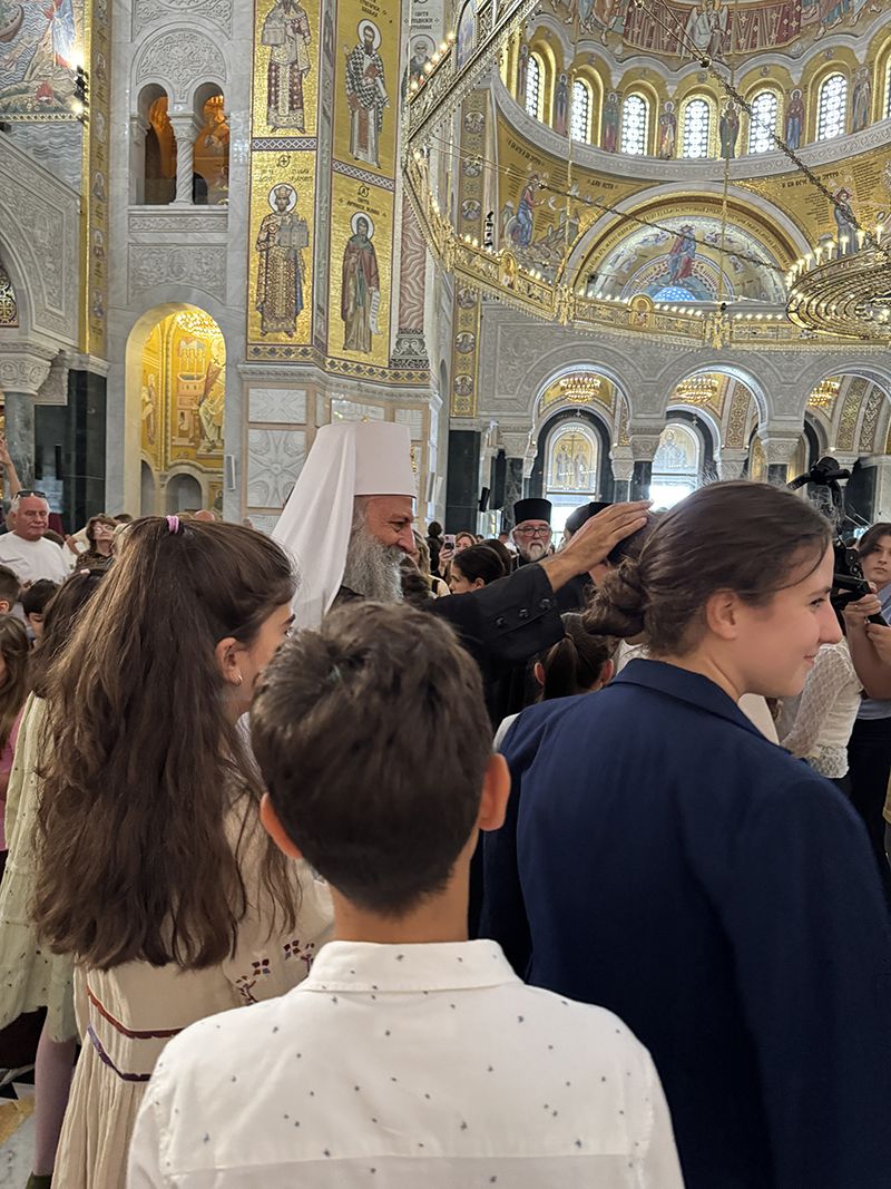 – Нека је на здравље и спасење свето Причешће и молитва. Помолили смо се за успешан почетак нове школске године, али не само за почетак него и за читав ток и трајање школске године. Ја честитам свима који су уписали прве разреде било основног, било средњег, било високог образовања, али и свима осталима, желећи најпре да и ова школска година, као и свака, буде пре свега година у којој се учимо доброти, у којој се учимо лепоти, у којој се учимо врлини, у којој се учимо поштовању једни других, у којој се учимо милосрђу, у којој се учимо свакој врлини. То желим свим ученицима, али исто тако то желим и онима који уче, учитељима, наставницима и професорима – поручио је Патријарх српски г. Порфирије и нагласио: