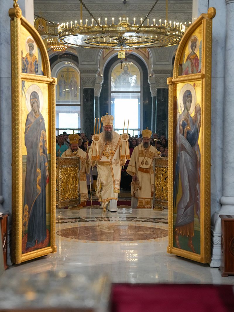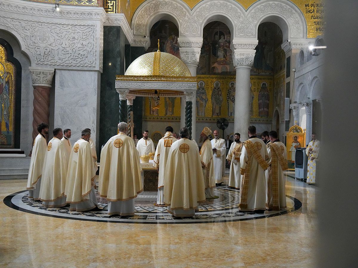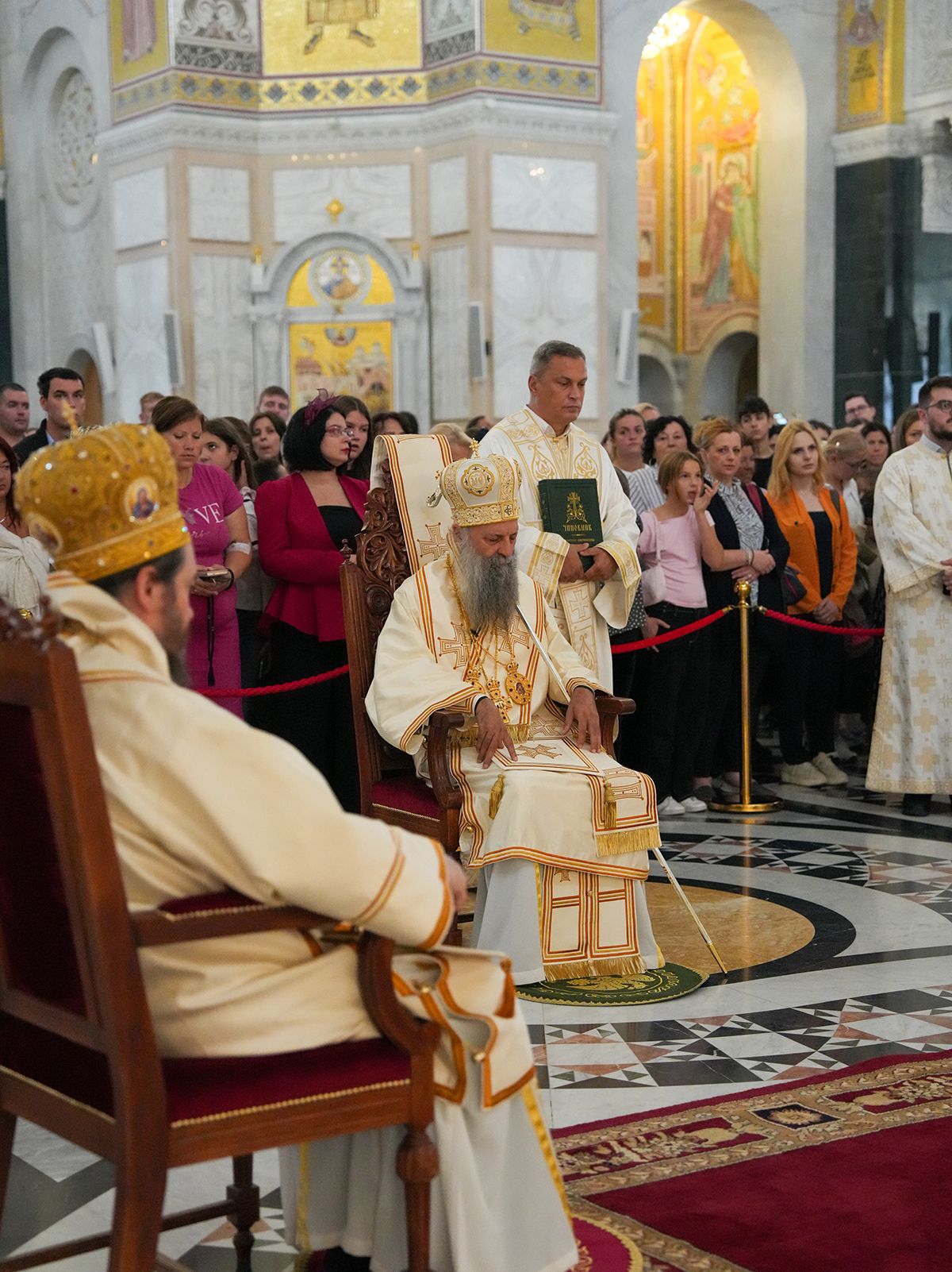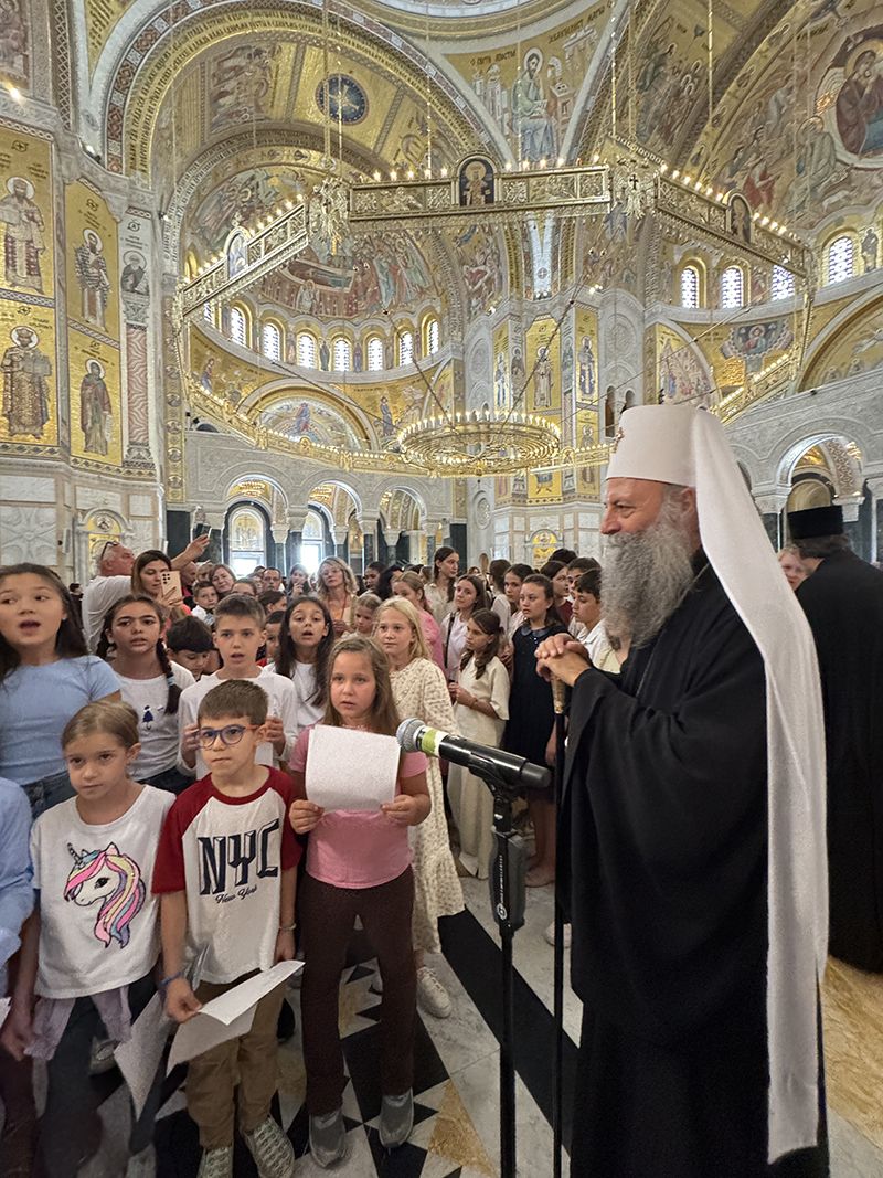 Његова Светост Патријарх српски г. Порфирије је началствовао 14. септембра 2025. године у храму Светог Саве на Врачару светом Литургијом и молебном поводом почетка нове школске године.