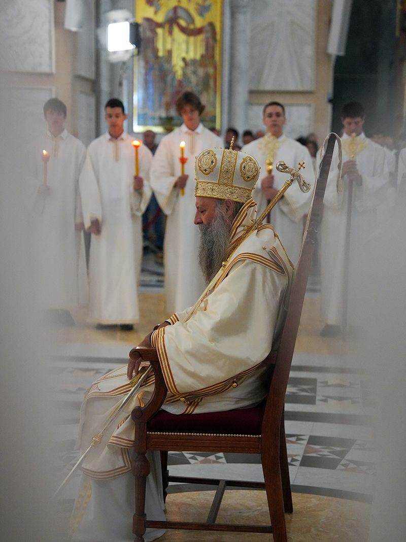 После читања јеванђељског одељка, Патријарх Порфирије је нагласио да главна тема сваког од нас, а уједно и главна тема Јеванђеља, јесте тема Царства Небеског: