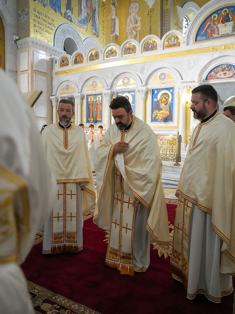 Светејшем Патријарху су саслуживали: преосвећена господа викарни епископи моравички Тихон и липљански Доситеј; протојереји-ставрофори Лука Новаковић и Димитрије Касапис; протојереј Ненад Јовановић, Драган Шовљански, Предраг Продић и Иван Штрбачки; јереји Петар Макал из Пољске Православне Цркве, Стеван Јовановић, Мирослав Васић и Бранислав Кличковић, кога је Патријарх српски том приликом рукопроизвео у чин протојереја; протођакони Драган Радић и Радомир Врућинић; ђакони Василије Перић, Синиша Дувњак, Марко Поповић и Никола Рашковић.