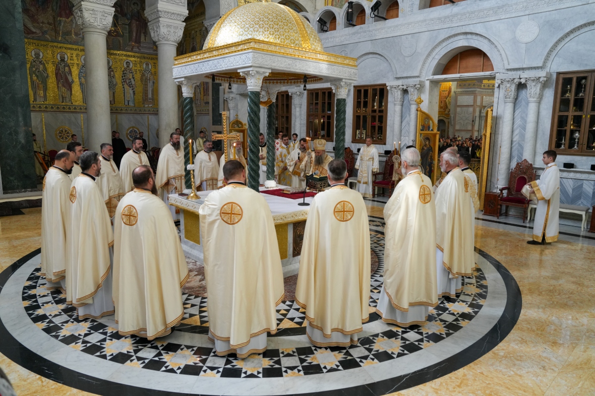 Његова Светост Патријарх српски г. Порфирије је началствовао 2. новембра 2025. године светом Литургијом у храму Светог Саве на Врачару.