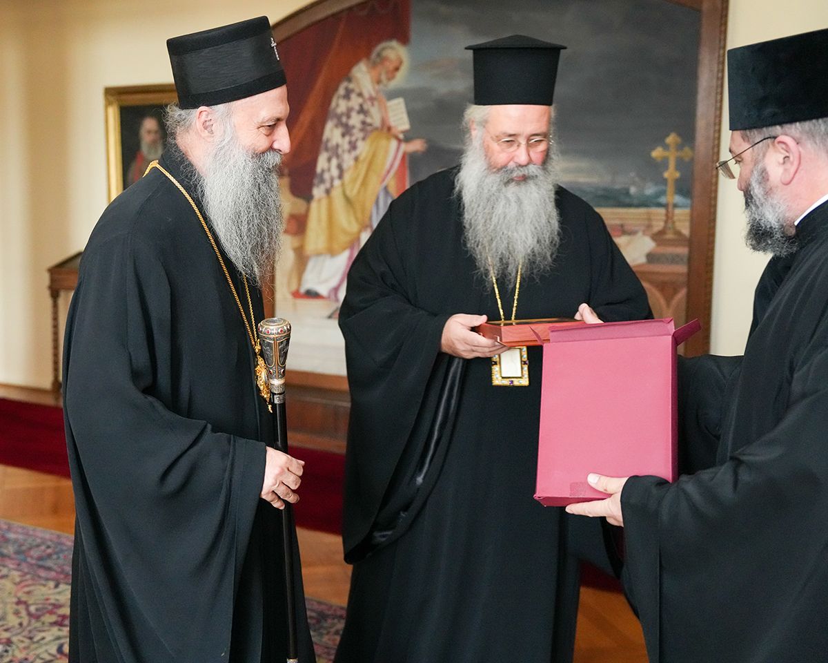 Његова Светост Патријарх српски г. Порфирије је разговарао 28. новембра 2025. године у Патријаршијском двору у Београду са Његовим Високопреосвештенством Митрополитом китруским, катеринским и платамонским г. Георгијем, професором Теолошког факултета Аристотеловог Универзитета у Солуну.