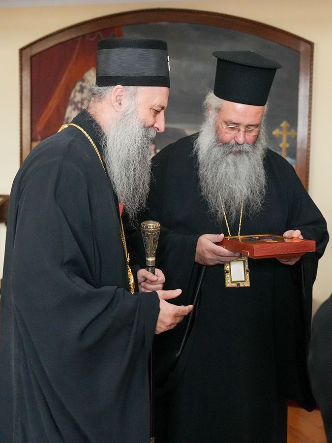 У срдачном и братском разговору, патријарх Порфирије и митрополит Георгије су разменили мишљења о актуелним питањима црквеног живота, сведочењу вере у савременом свету и заједничком настојању православних народа да, у духу љубави и међусобне подршке, сведоче јединство Тела Христовог.