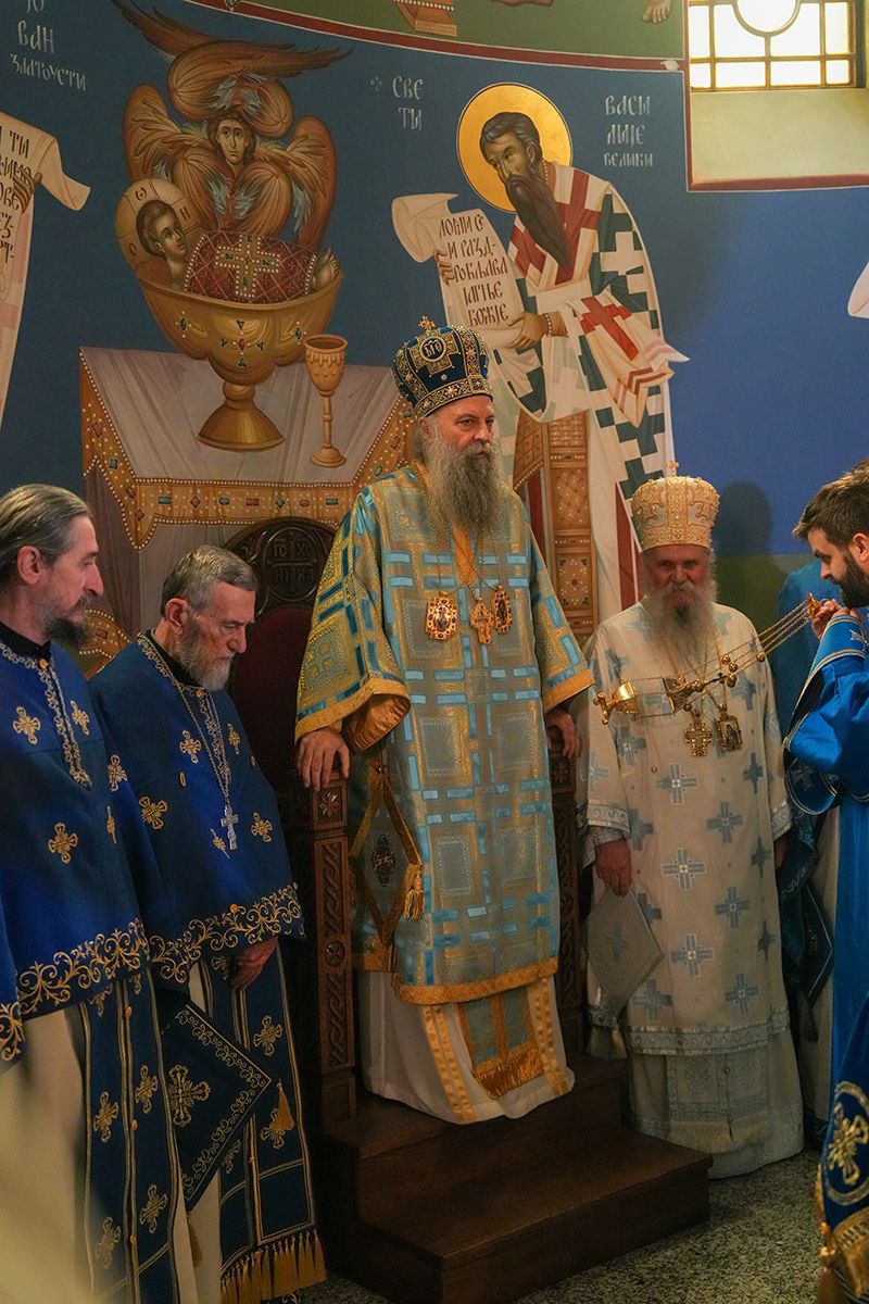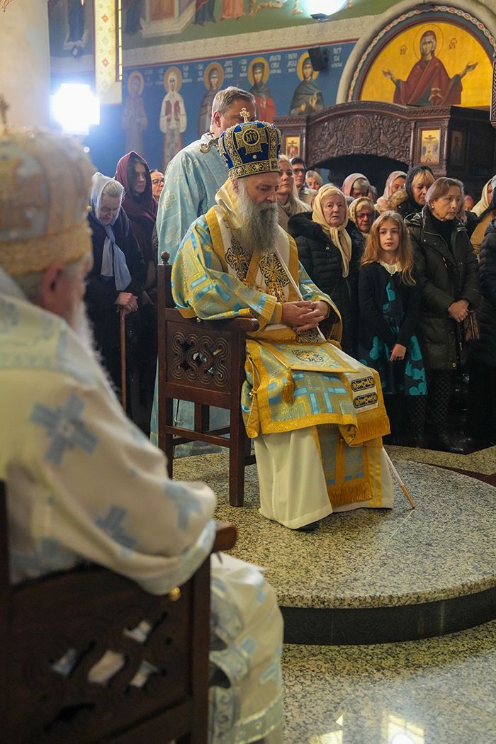 – Часнију од херувима и Славнију од серафима, браћо и сестре, славимо увек! А данас се посебно сећамо Ваведења, догађаја који је спасоносан за нас људе, за сваког од нас појединачно, али и за читав људски род. Сећамо се када је Пресвета Богородица уведена у Храм и тиме показала да је сваком од нас пут који води у смисао, у лепоту, у радост, у живот – улазак у Храм – беседио је Светејши г. Порфирије и нагласио: