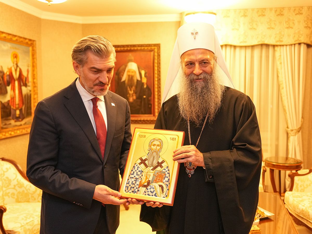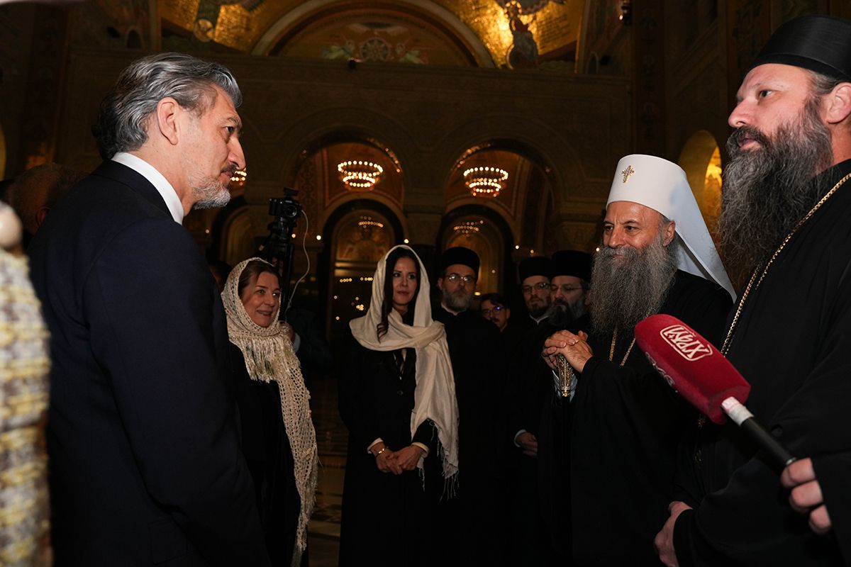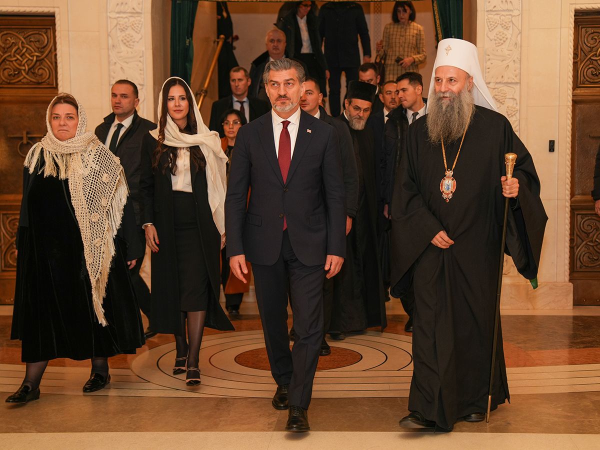 Његова Светост Патријарх српски г. Порфирије је свечано дочекао 18. децембра 2025. године у храму Светог Саве у Београду г. Михаила Кавелашвилија, председника Грузије, који борави у званичној посети Србији.